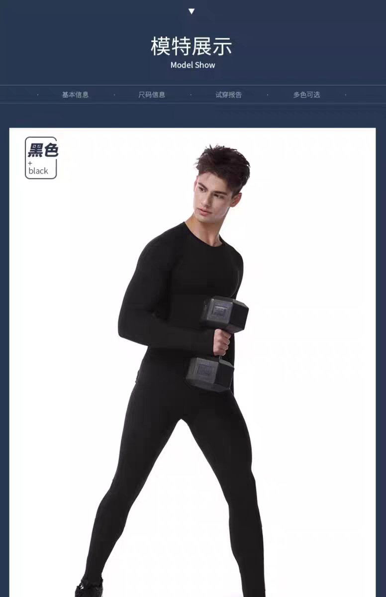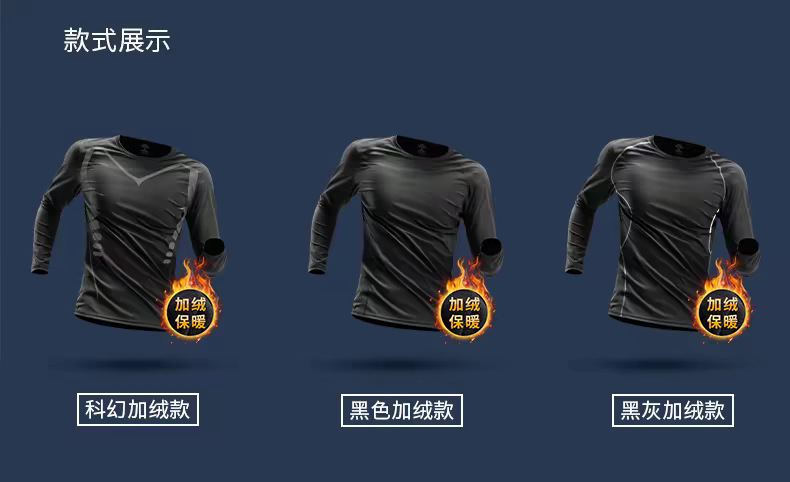 跨境加绒健身套装运动服无痕速干衣跑步爬山紧身高弹保暖内衣男士
