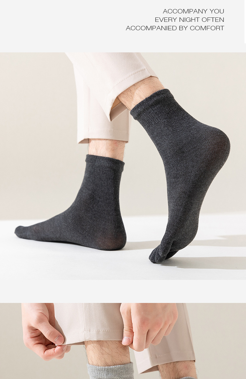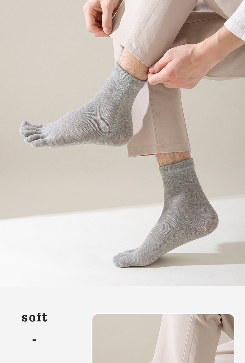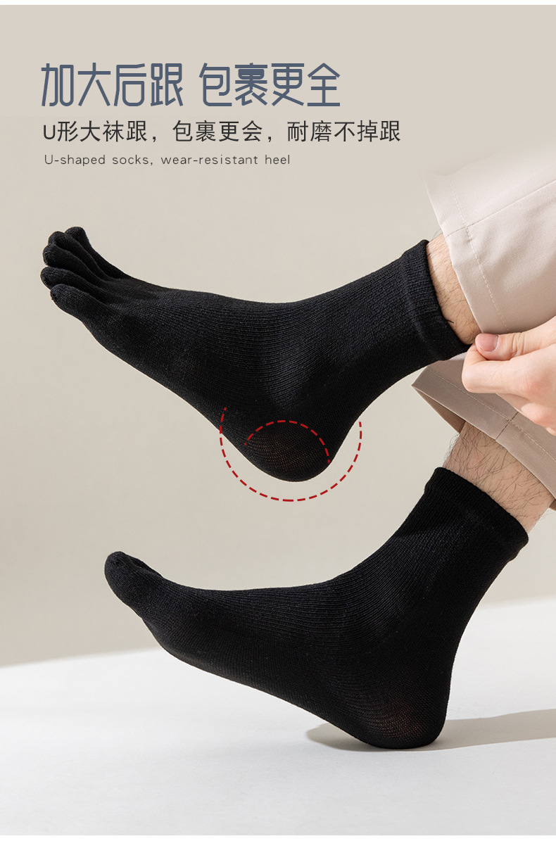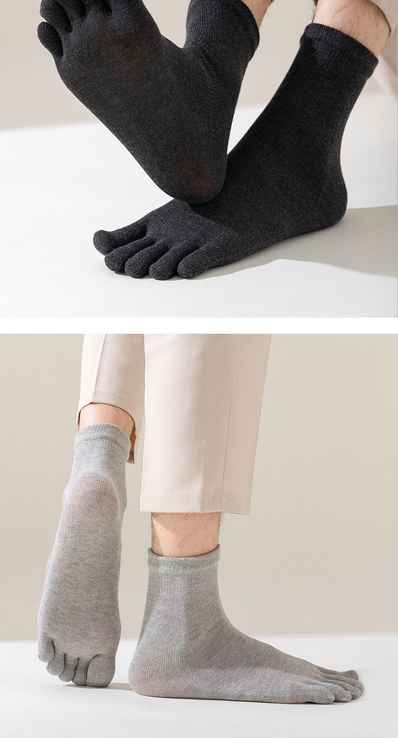 10双免运费五指袜男涤棉四季纯色分趾袜中筒男士五趾袜脚趾袜
