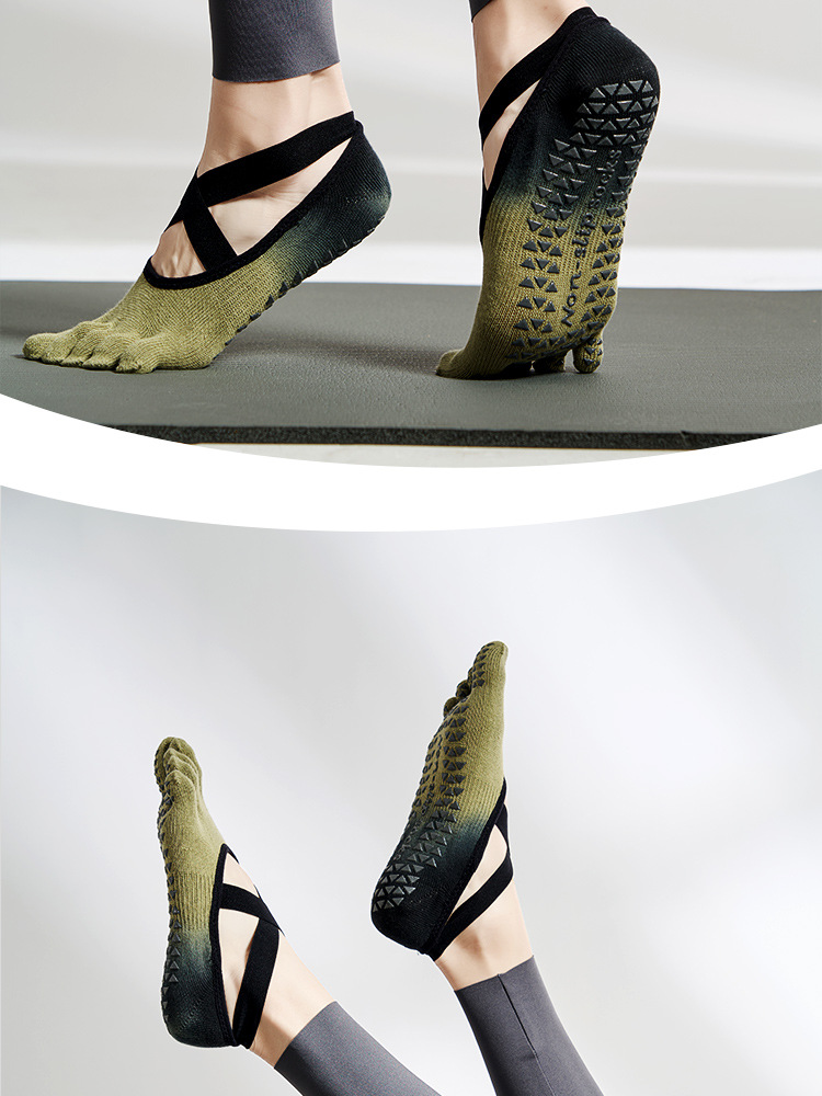 新款渐变绑带瑜伽袜子防滑专业女五指袜普拉提袜秋冬季分指运动点