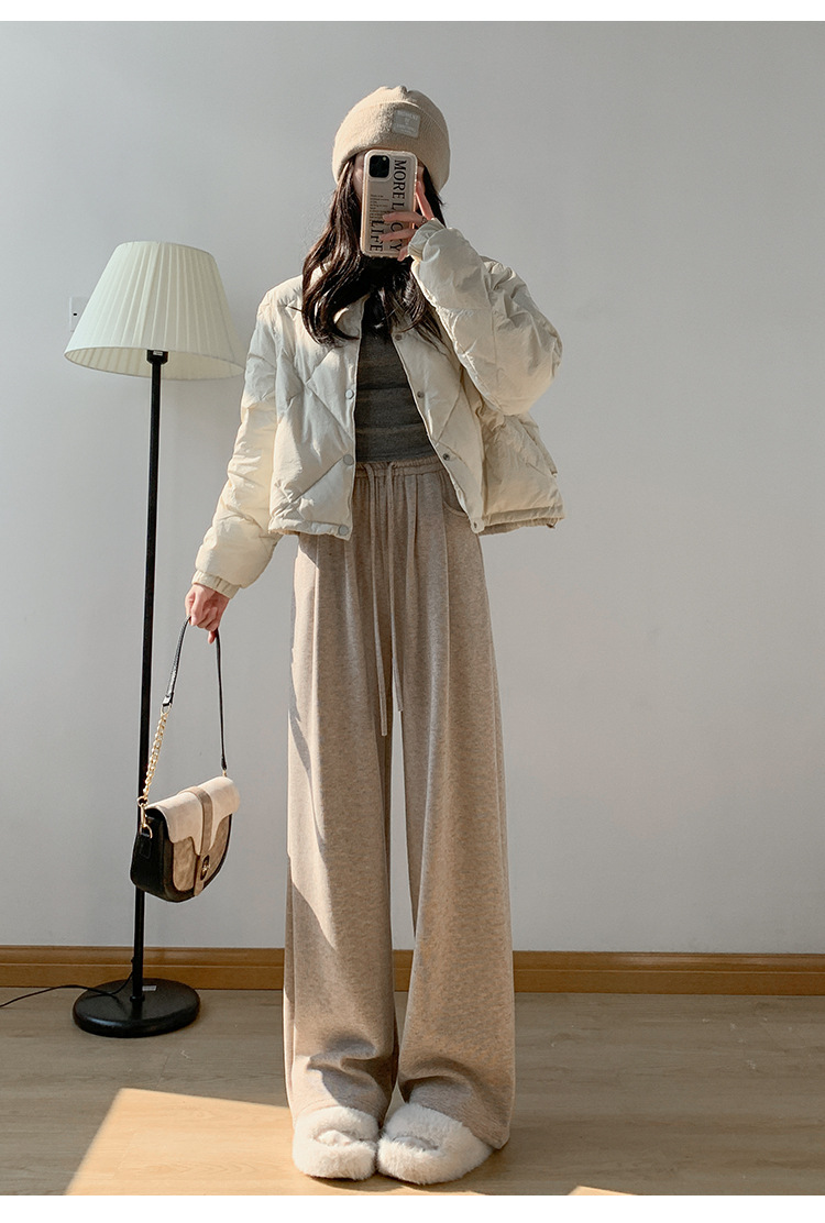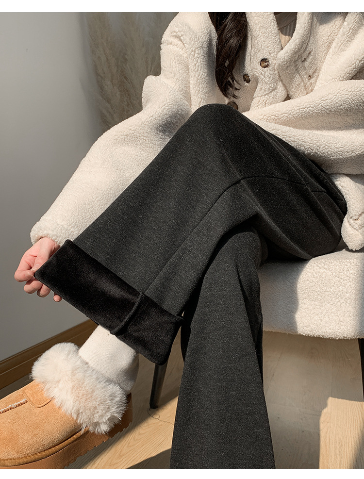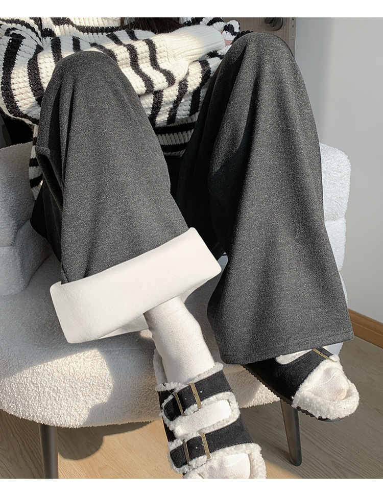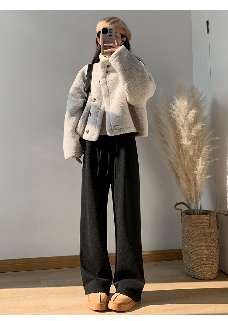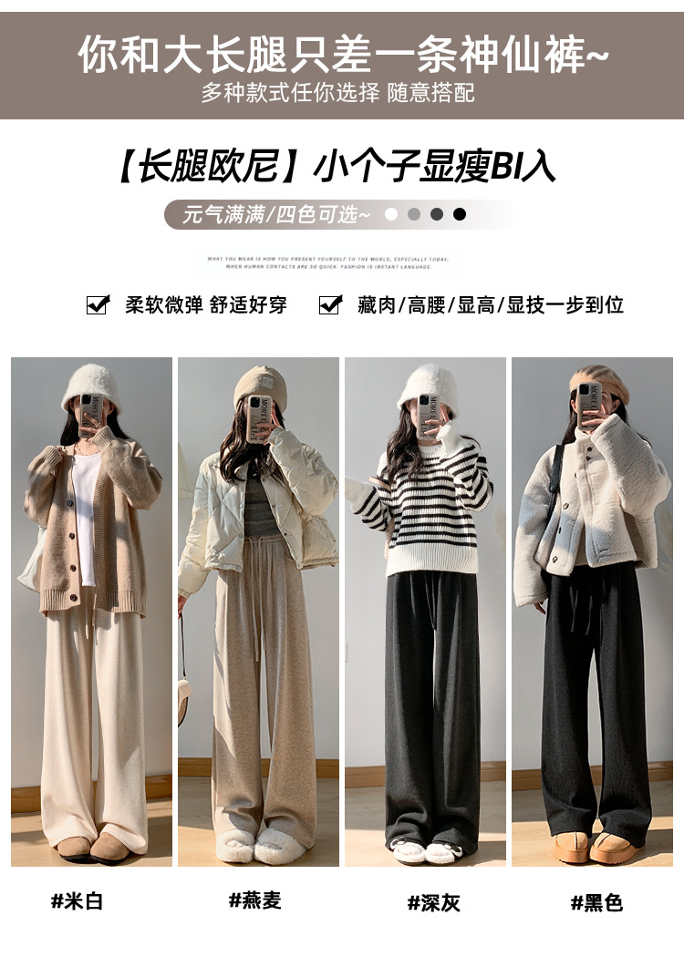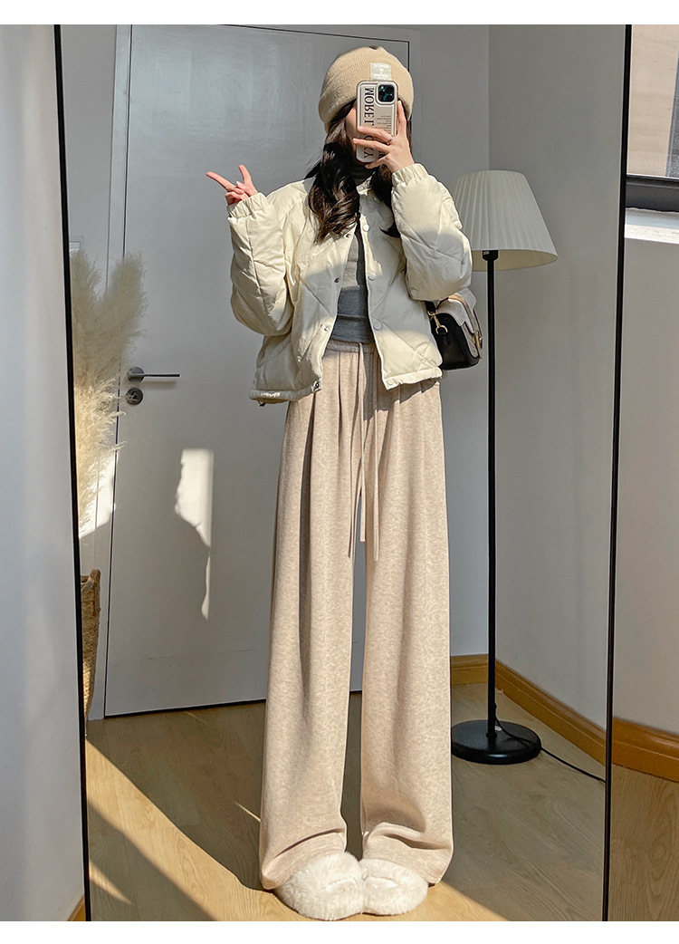 窄版阔腿裤女秋冬2024新款直筒休闲宽松慵懒小个子山本加绒糯米裤