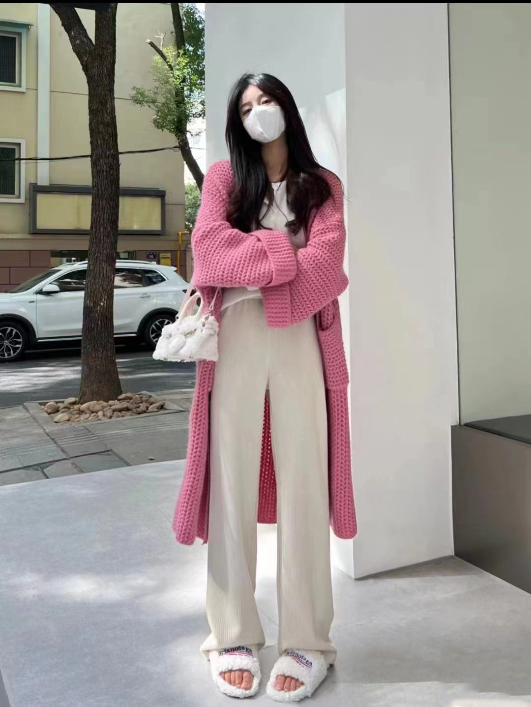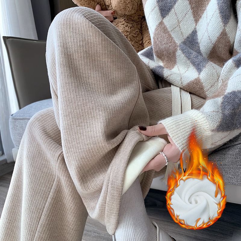 2023秋冬季新款加绒加厚仿羊绒直筒阔腿遛弯裤女港风松紧抽绳长裤