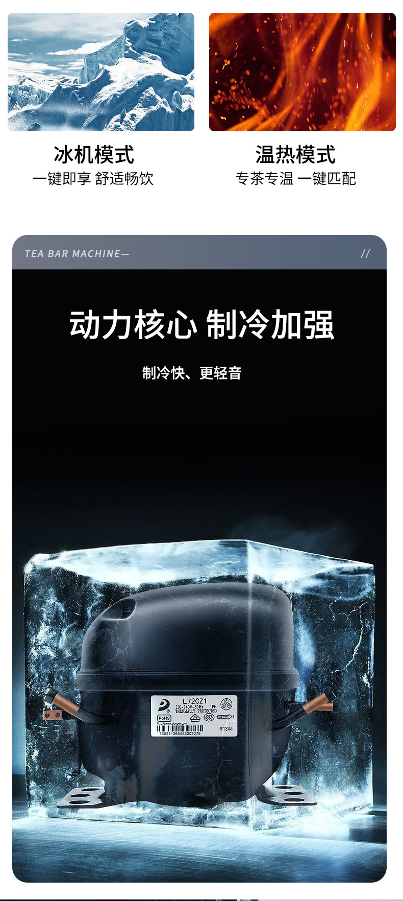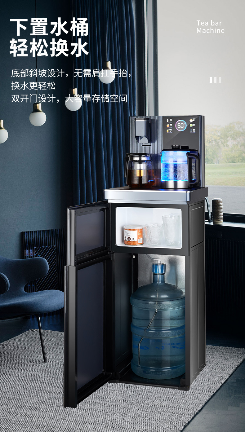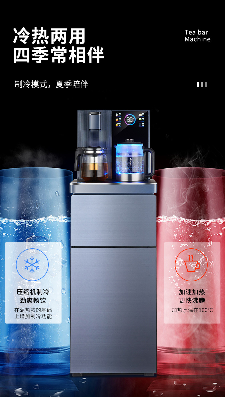 沁原茶吧机压缩机制冷冰热新款智能语音家用下置桶双门数显茶吧机