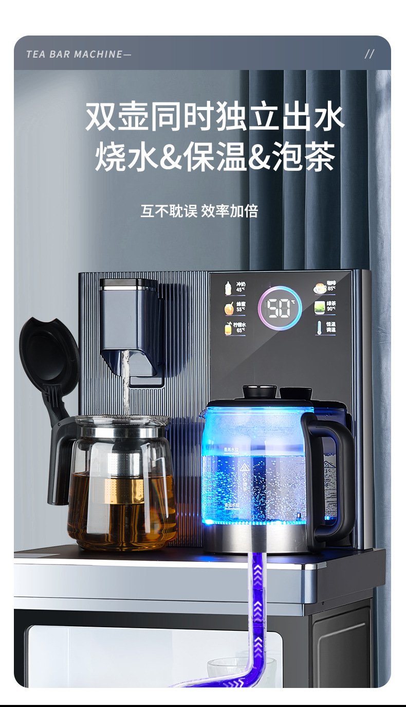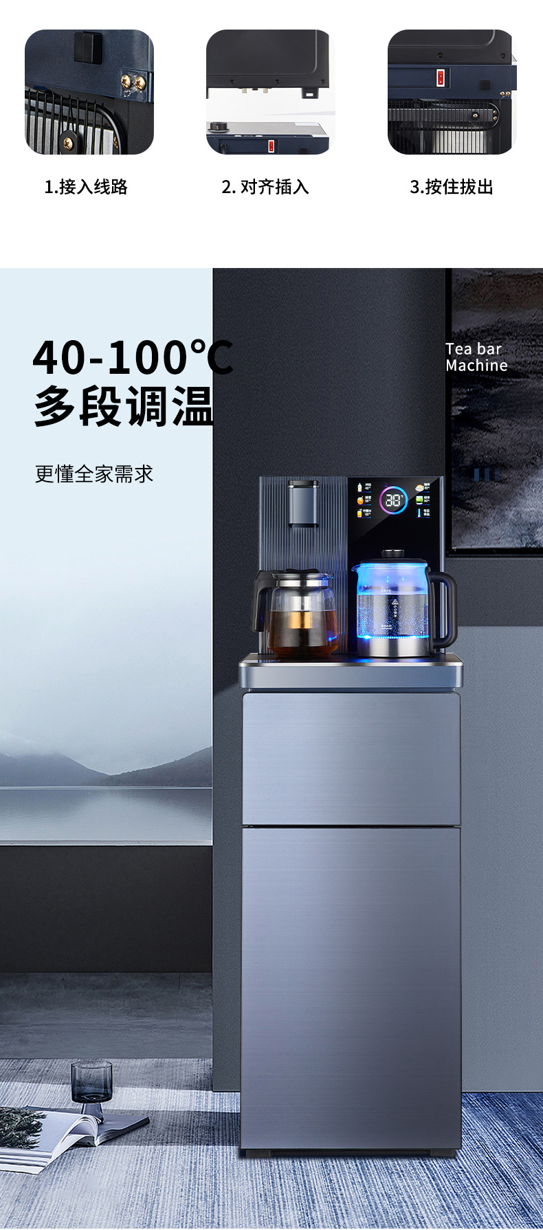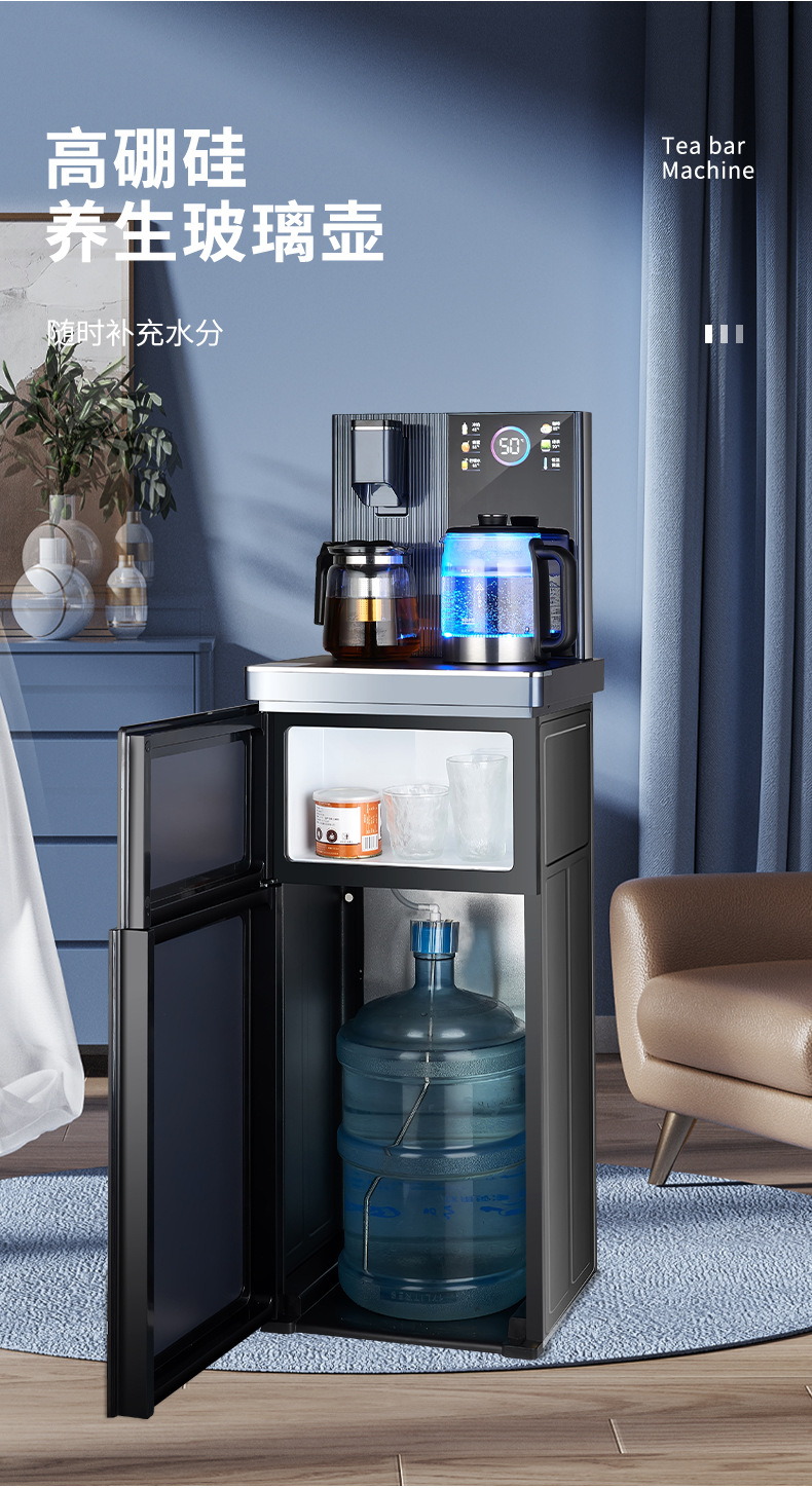 沁原茶吧机压缩机制冷冰热新款智能语音家用下置桶双门数显茶吧机
