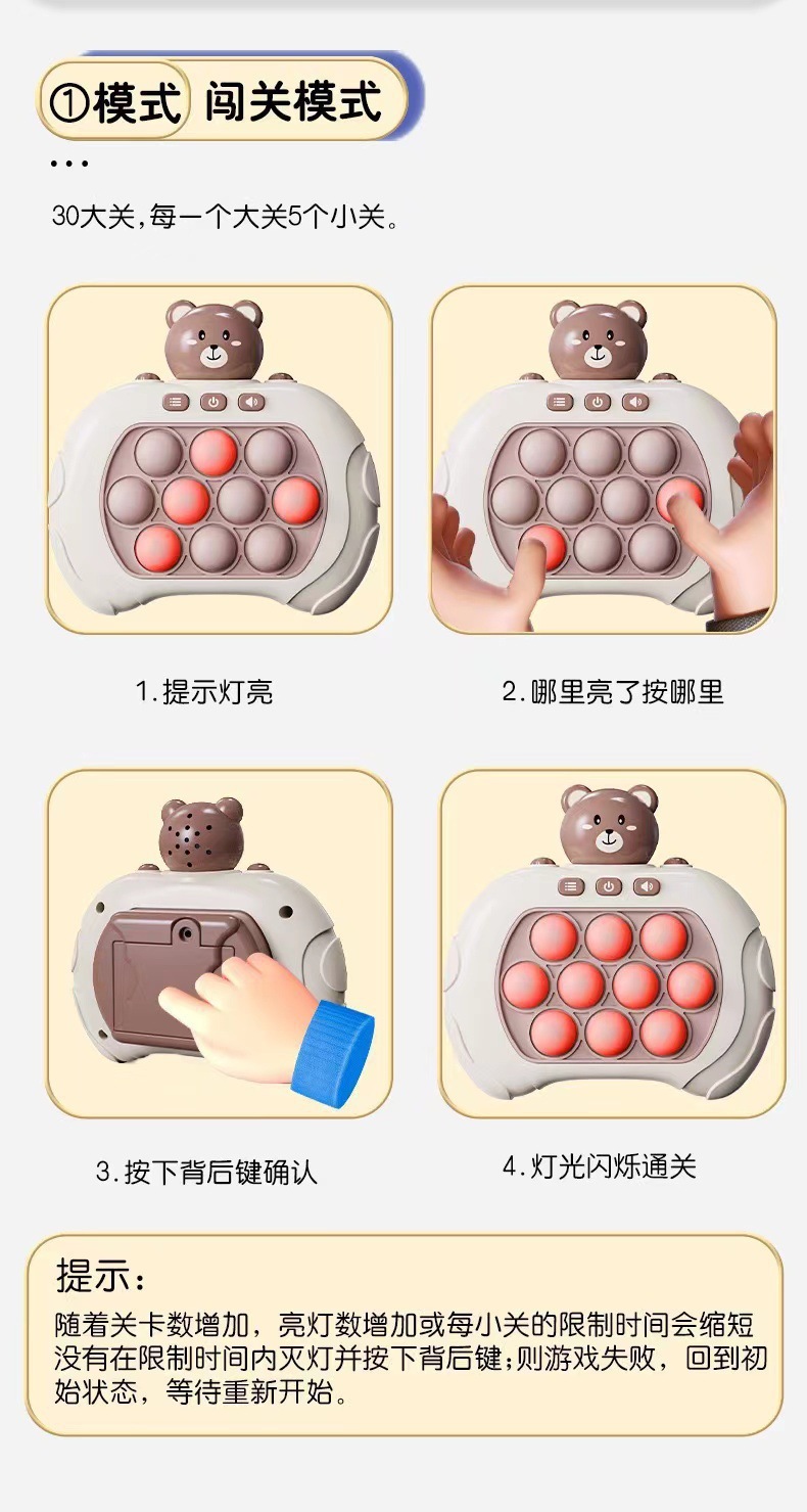 跨境第二代闯关速推游戏机儿童玩具打地鼠按按乐机思维逻辑解压