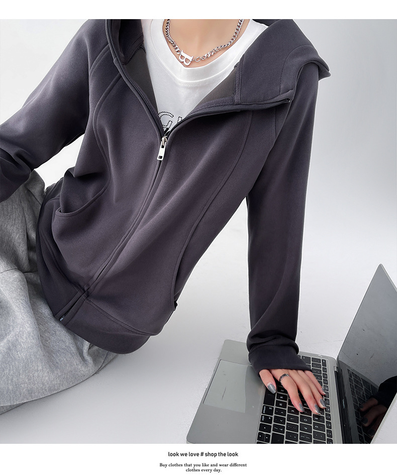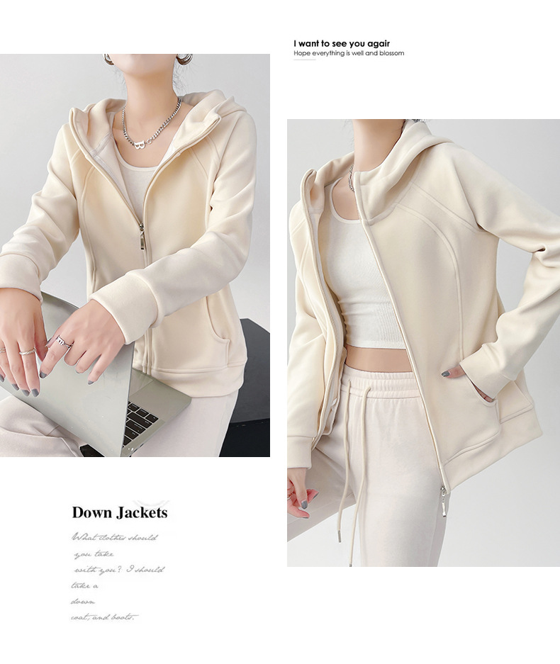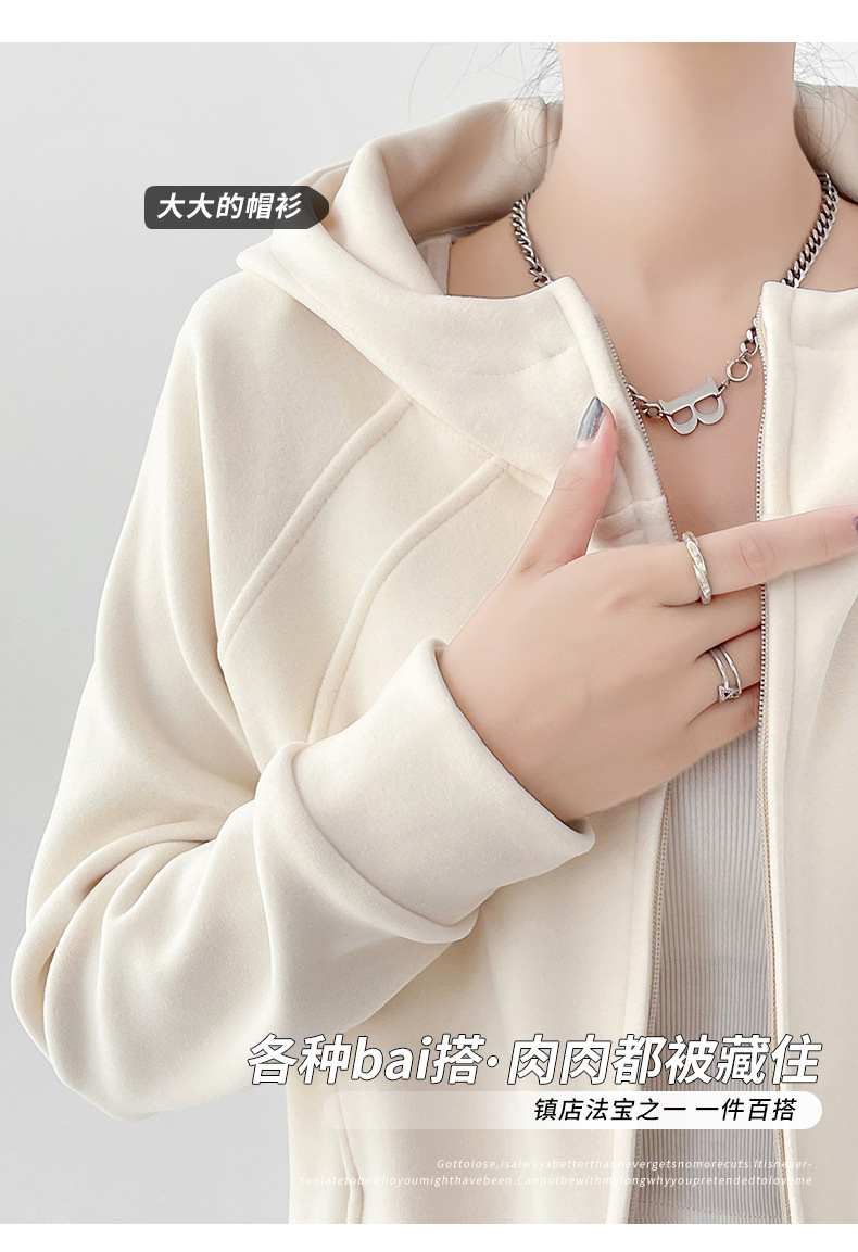 lulu春秋季韩国加厚卫衣外套女连帽秋冬外穿宽松休闲开衫女装上衣