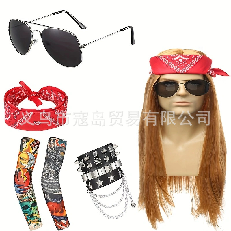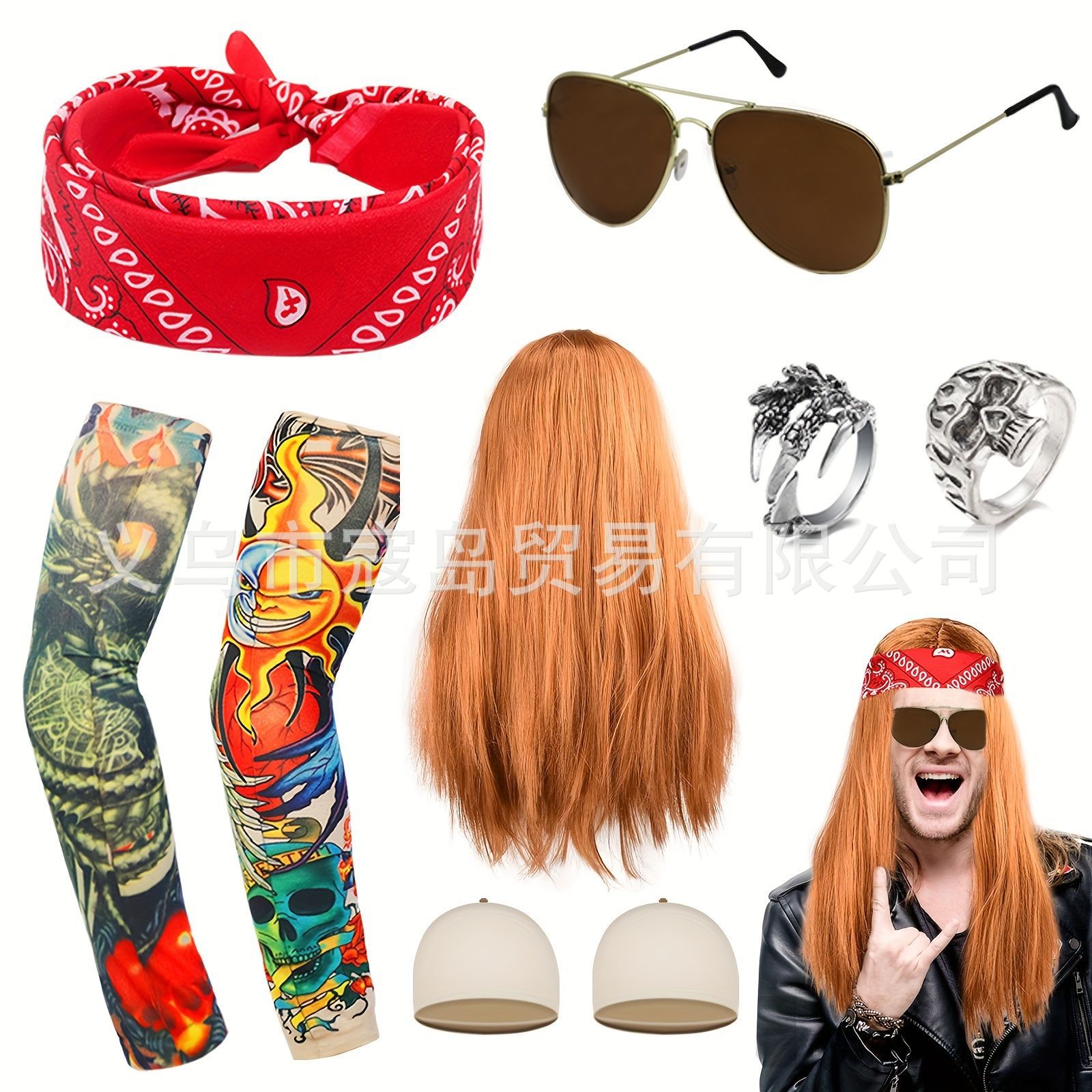 亚马逊热销万圣节假发60s70s80年代朋克装扮金色直发长直假发头套