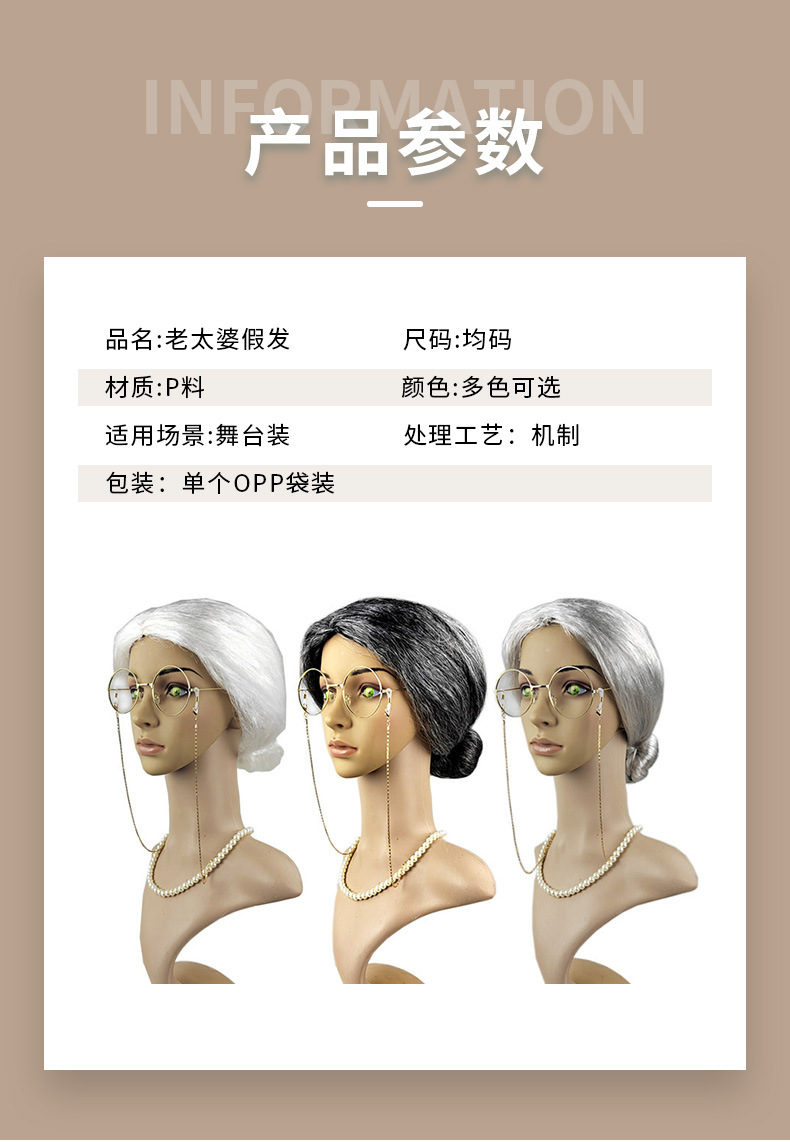 老太太装扮假发老奶奶婆婆头套化装舞会道具活动搞怪老太太头假发