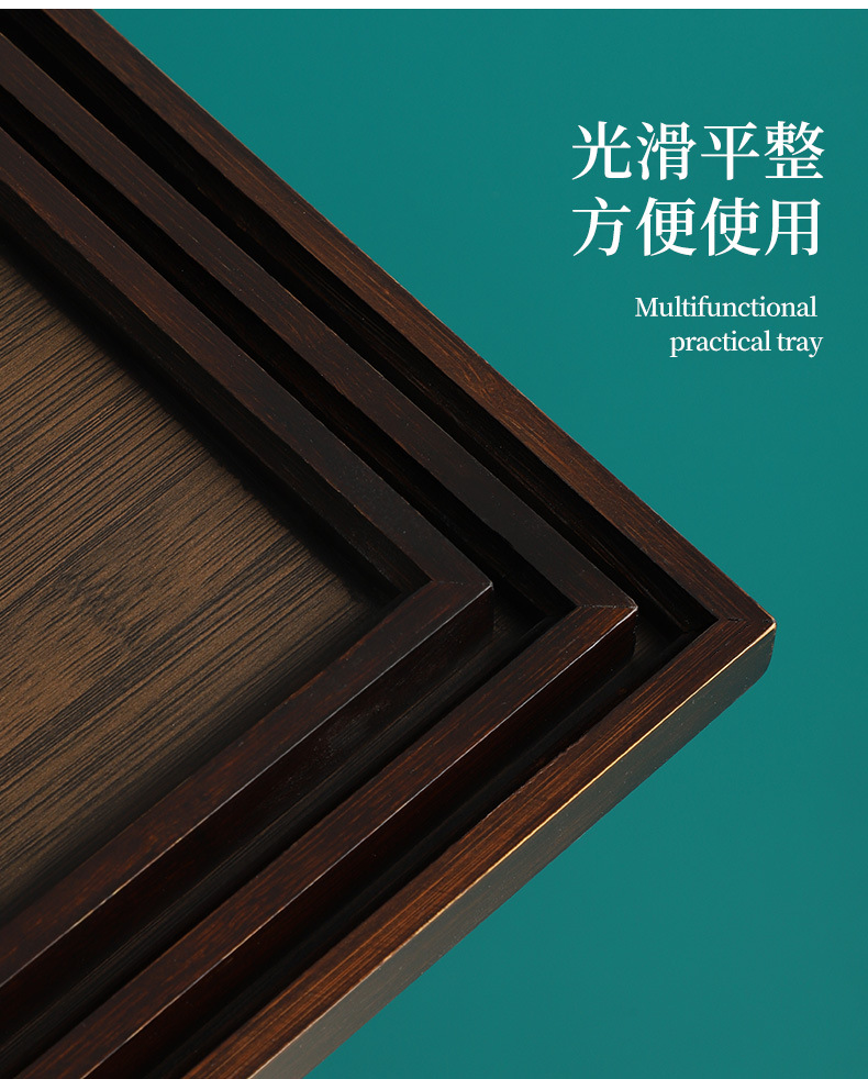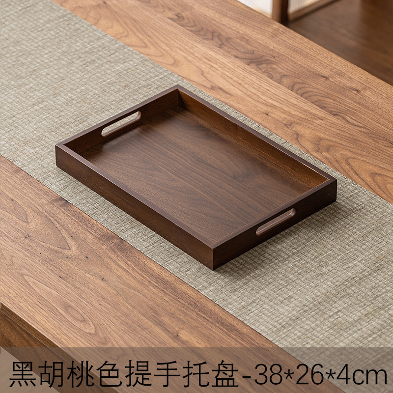 黑胡桃色竹制托盘家用复古茶盘茶水杯沥水盘茶台茶海带提手托盘