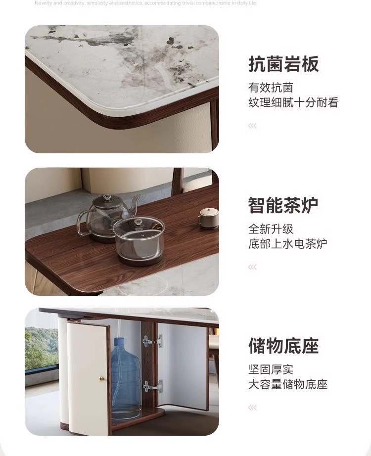 轻奢岩板茶桌椅组合实木现代简约意式家用阳台小户型功夫办公茶台