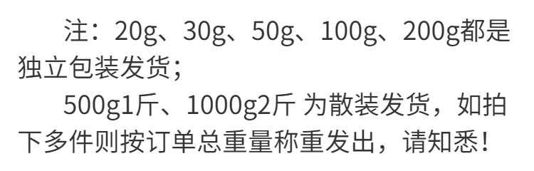 | 500g散装(如拍下多件则按总重量发货) | USD $2.06 | 99999 piece available |