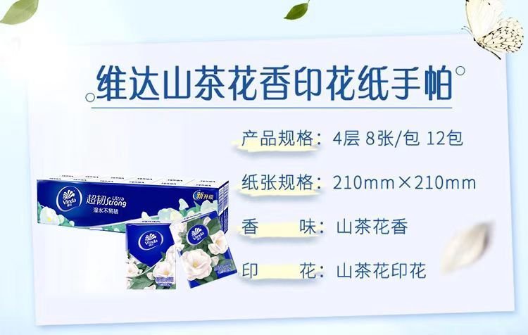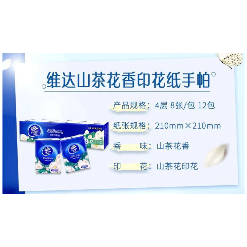 维达手帕纸山茶花超韧小包印花纸巾加厚随身面巾纸便携式餐巾纸
