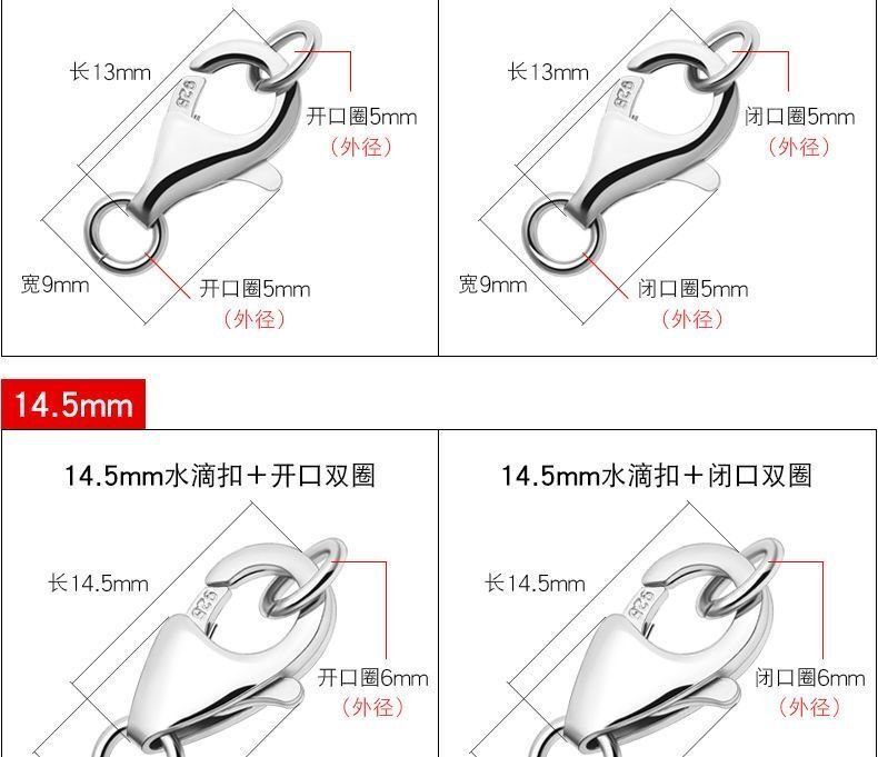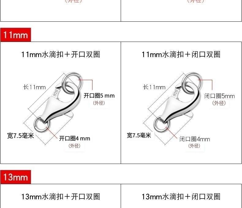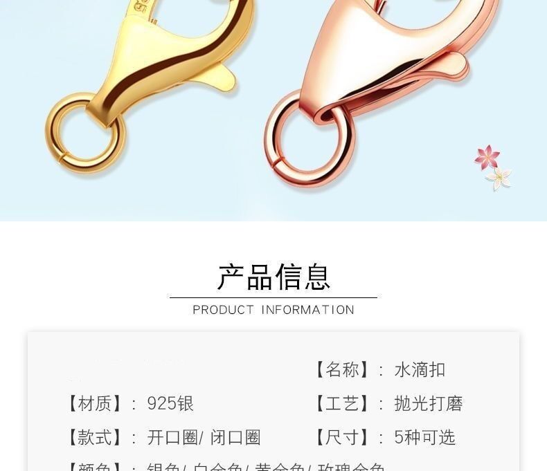 925纯银水滴扣项链手链锁连接扣配件接头扣子弹簧龙虾扣DIY万能头