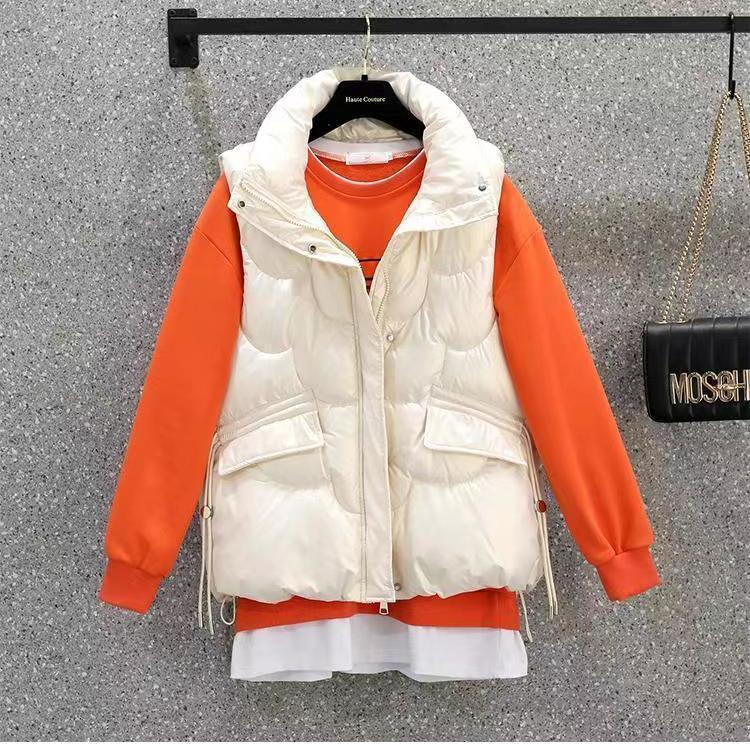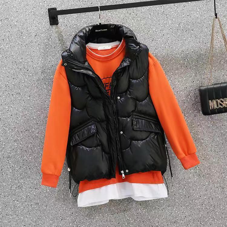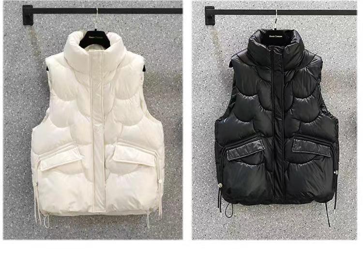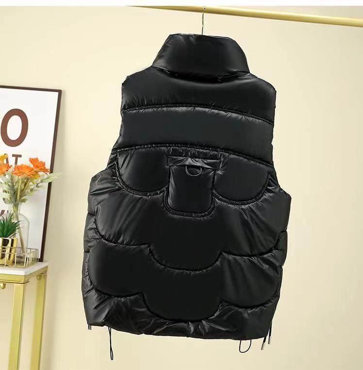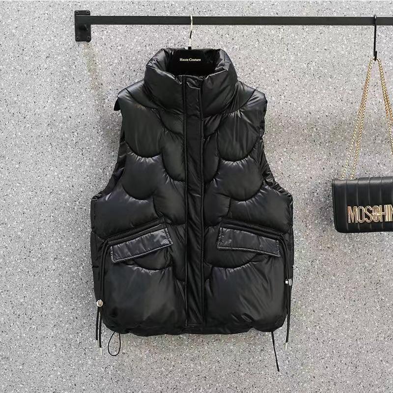 羽绒棉马甲2024秋冬新款韩女短款版宽松加厚百搭免洗亮面马夹坎肩