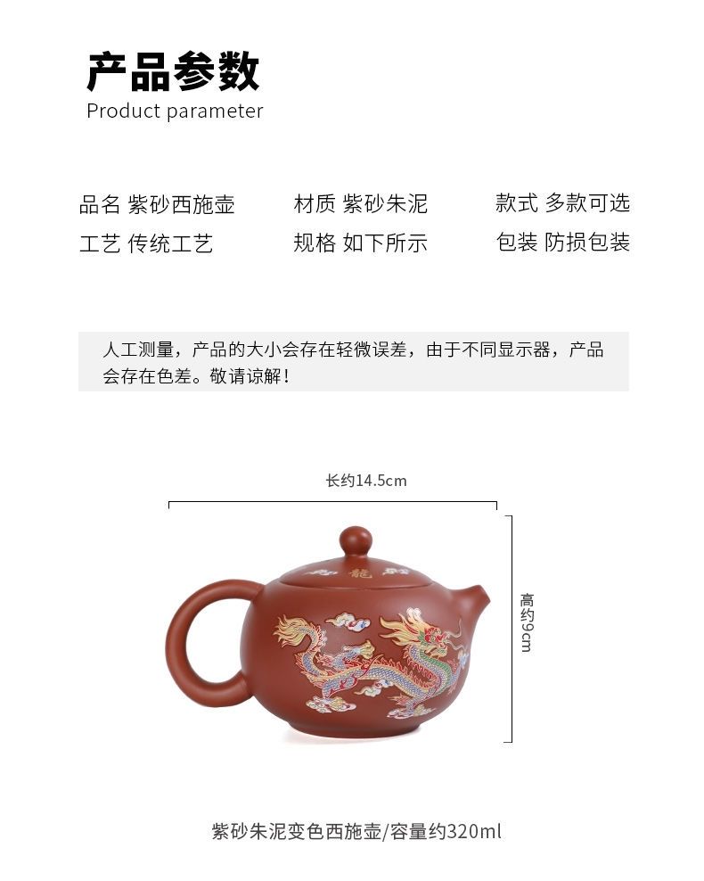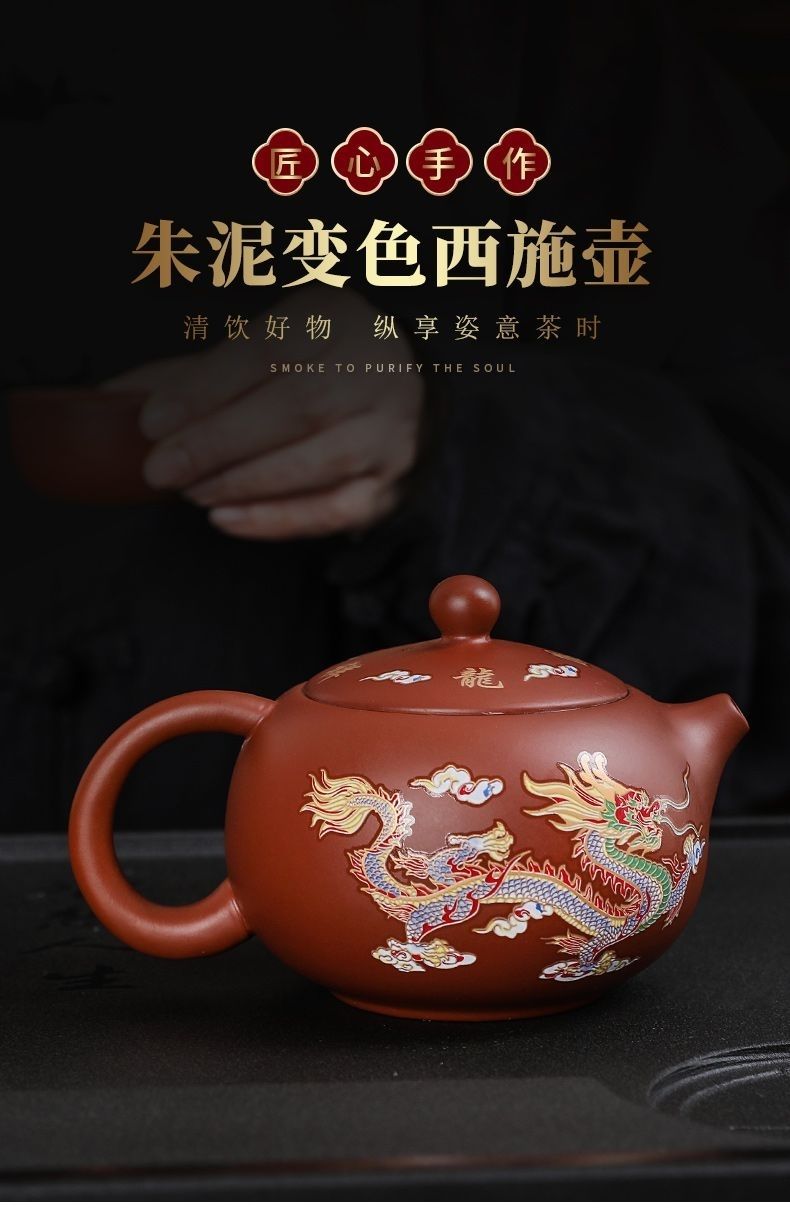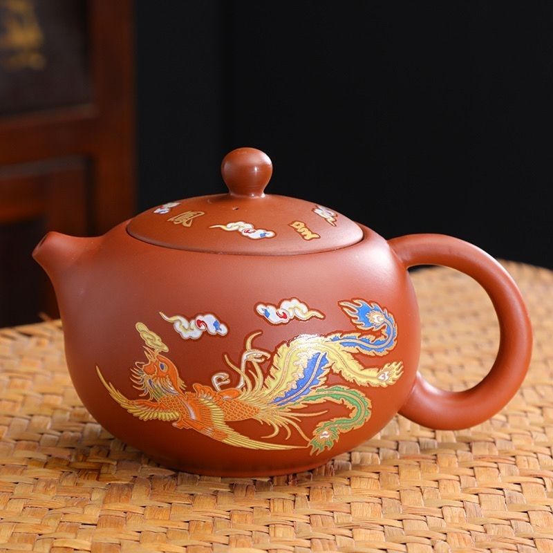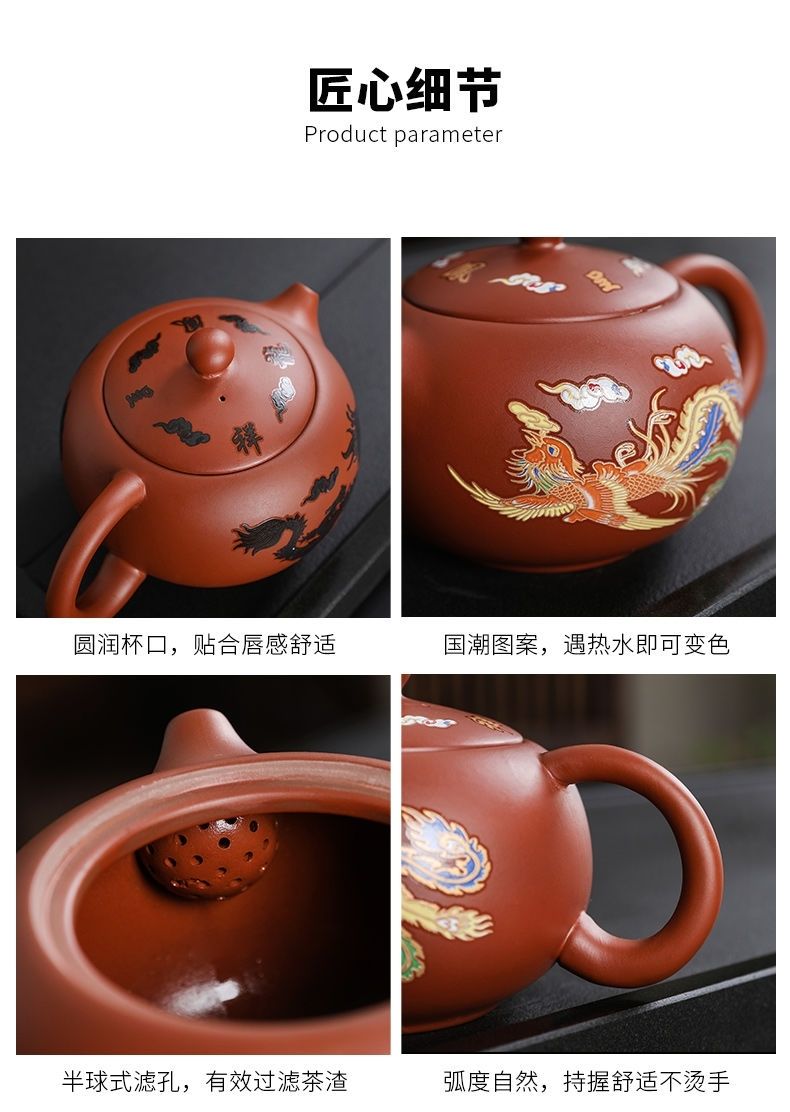 紫砂变色茶壶单壶朱泥凤鸣壶西施壶功夫茶具家用龙凤呈祥泡茶壶