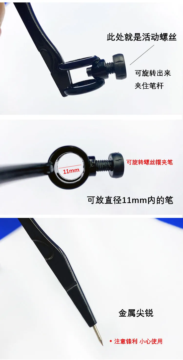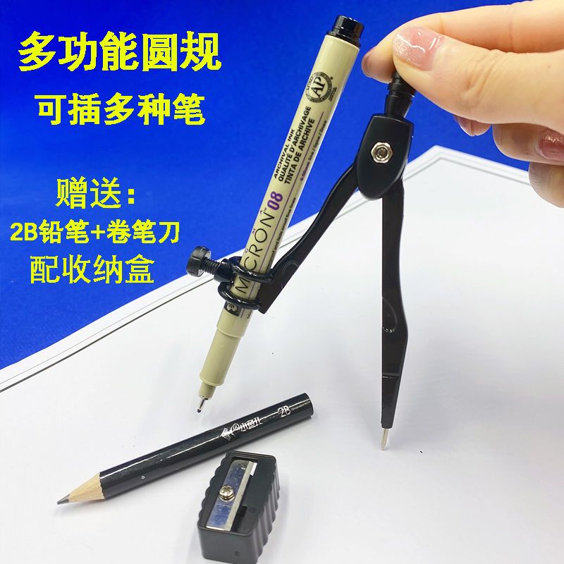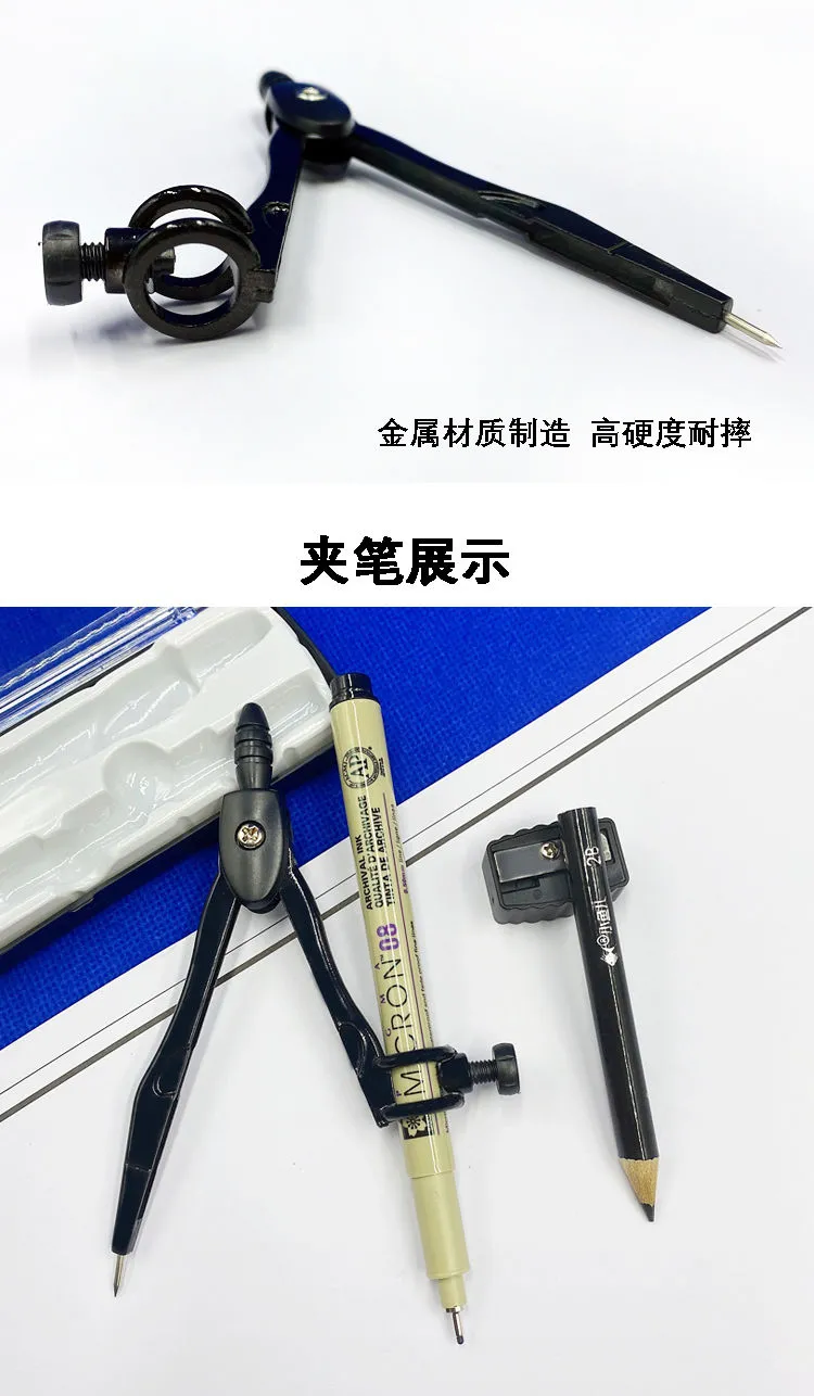 多功能金属圆规学生通用圆规可夹笔针管笔铅笔画圆用圆规绘图工具