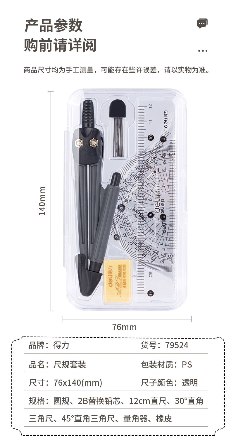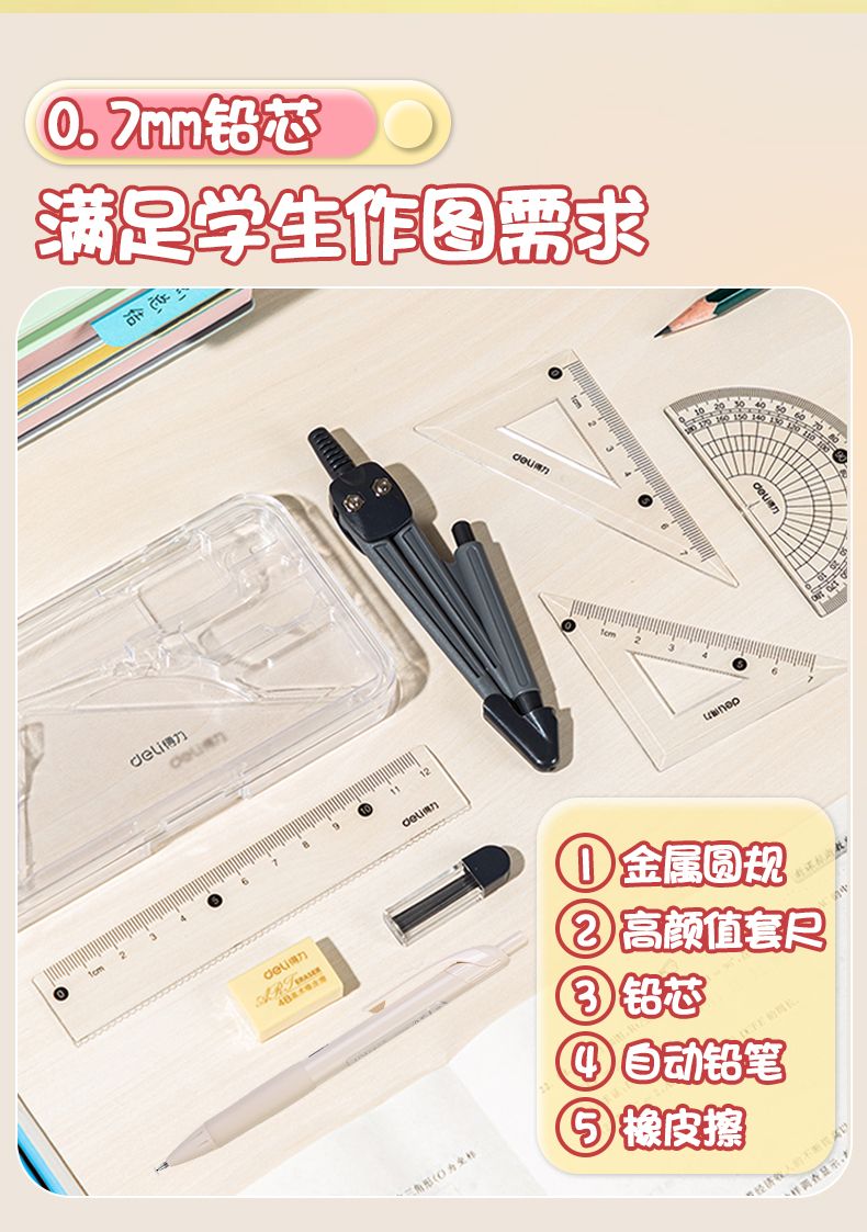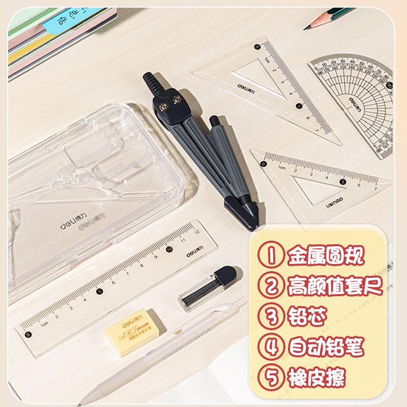 | 【便携夹笔款】得力尺规7件套+收纳盒 | USD $2.23 | 99999 piece available |