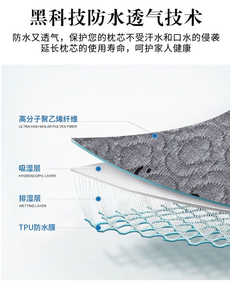 a类防水乳胶枕头套一对防头油网红款记忆枕套单人60X40学生30X50