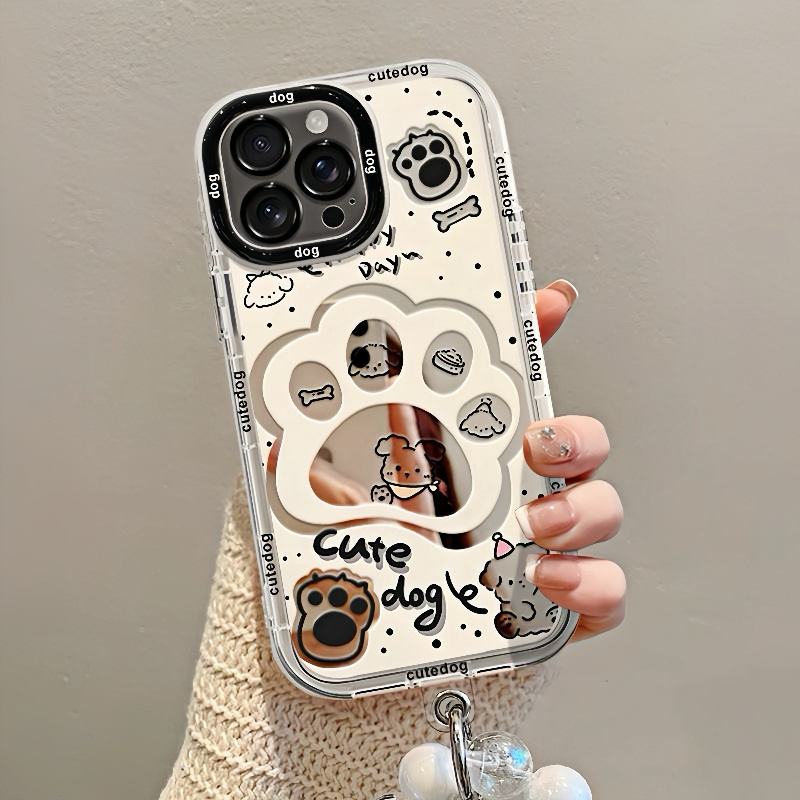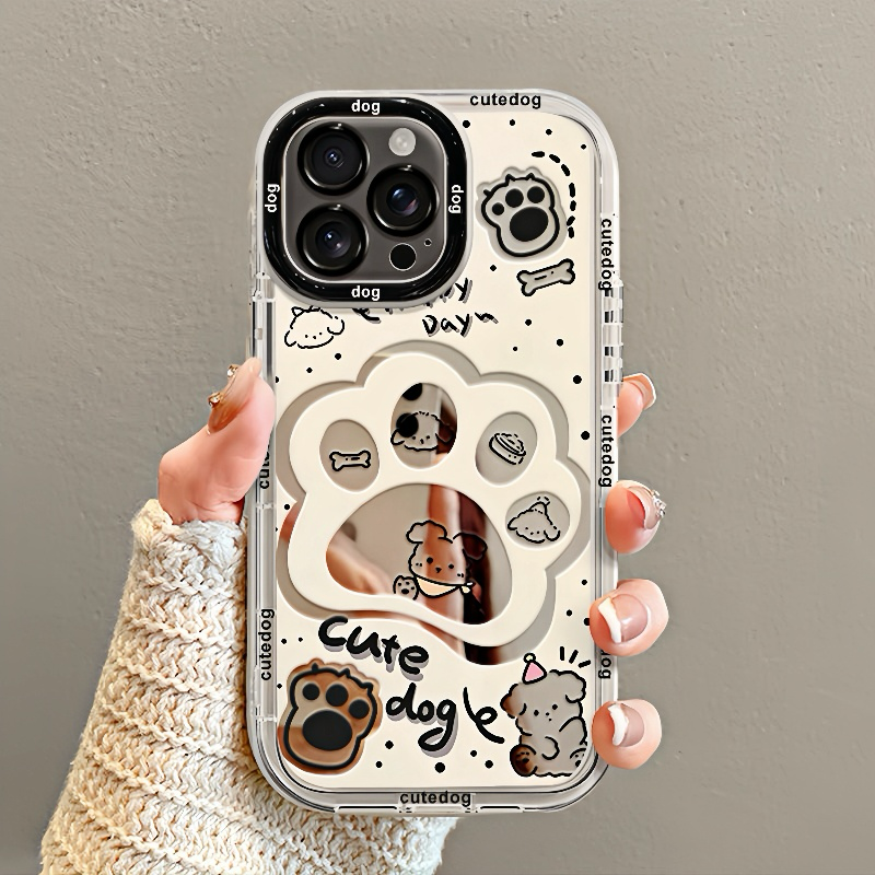 puppy paw mirror for iphone15plus phone case 14/13pro personality 12mini girl x/xs