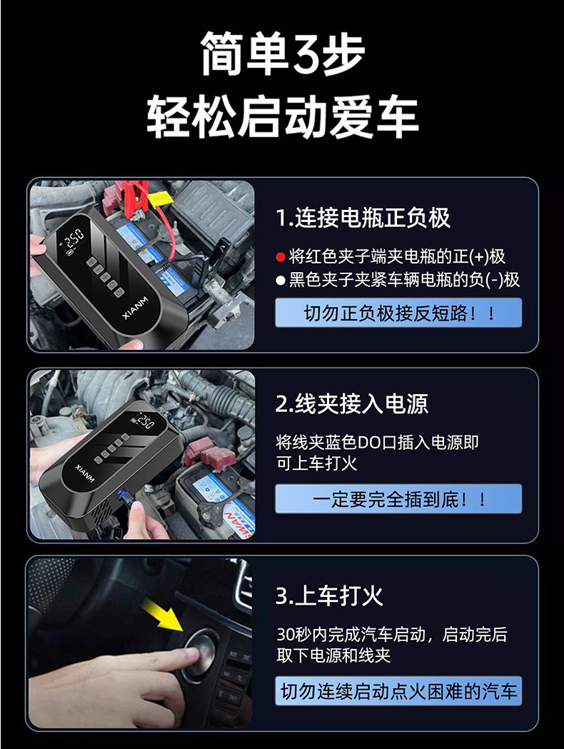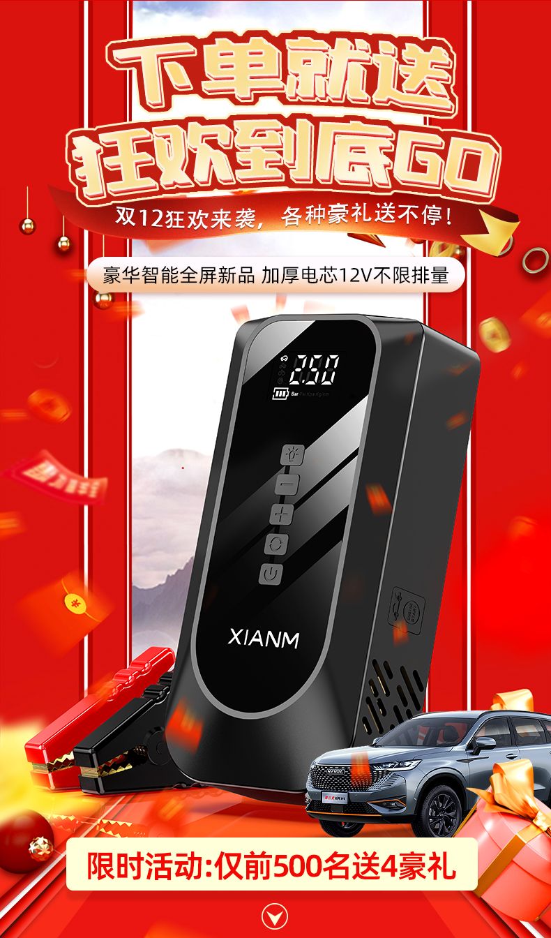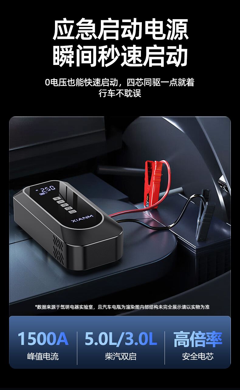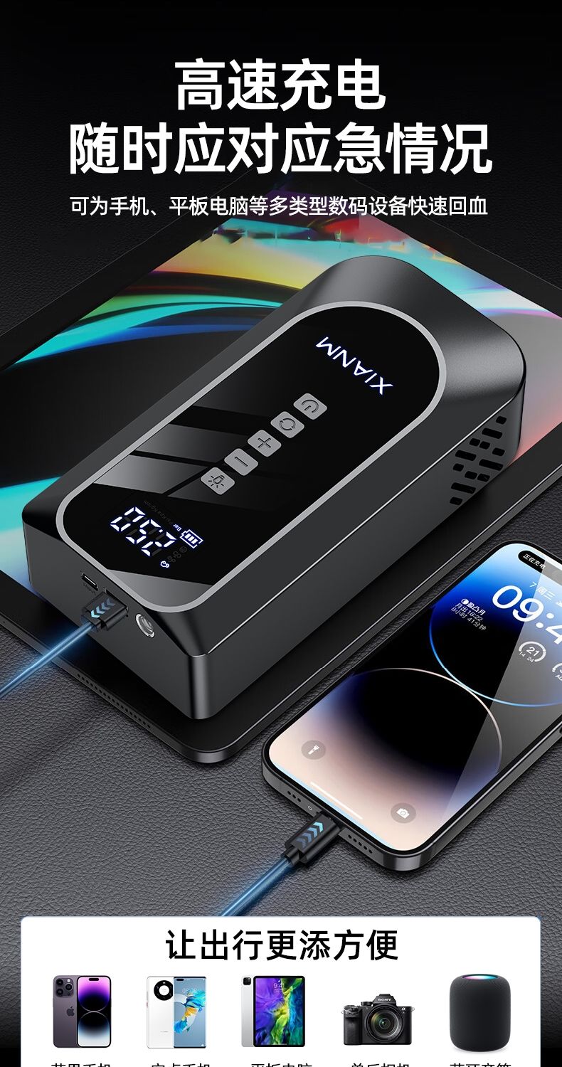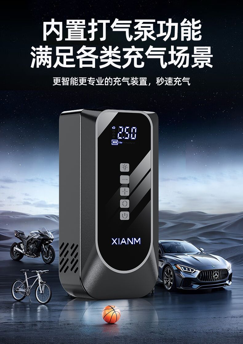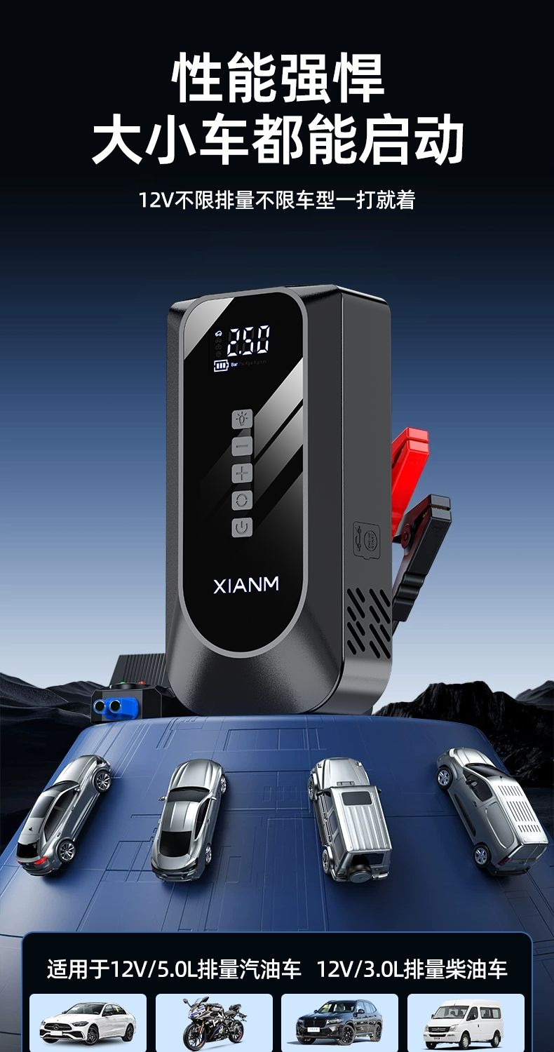氙明电器12V汽车应急启动电源充二十四合一充气泵车载强启搭电宝