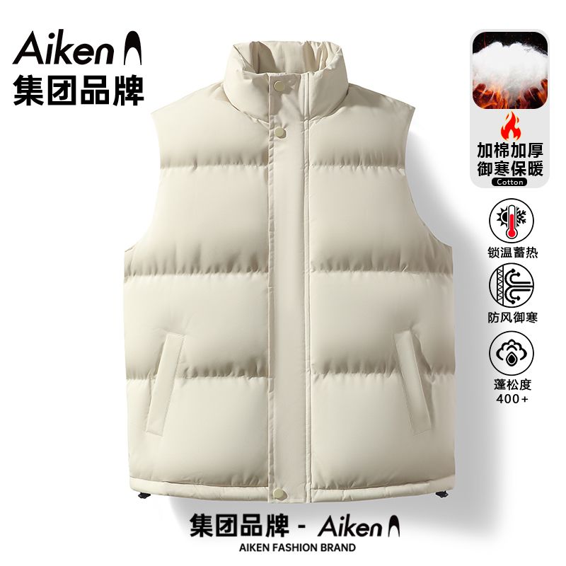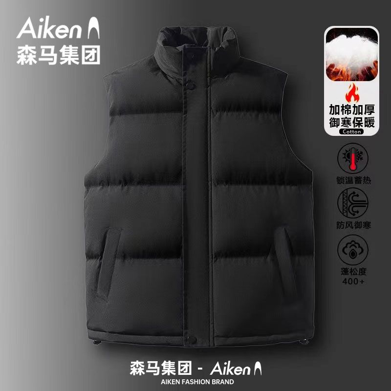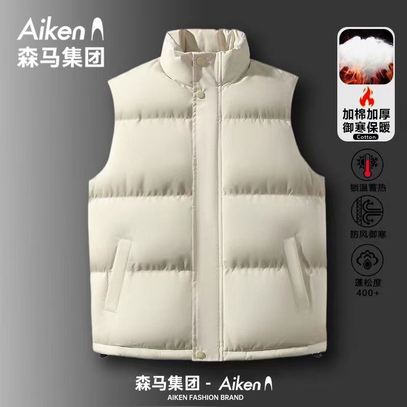 森马集团AIKEN马甲男女秋冬季加厚羽绒棉马夹情侣款坎肩棉服外套