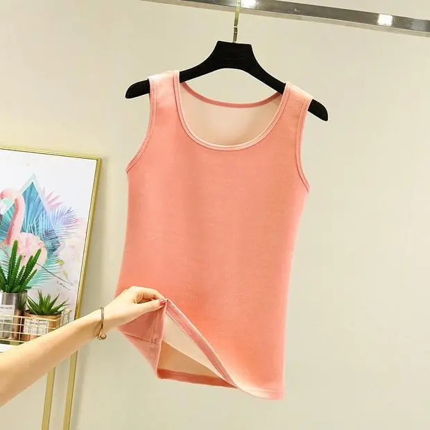 冬季德绒自发热保暖背心女内穿加绒吊带上衣百搭加厚防寒打底衫