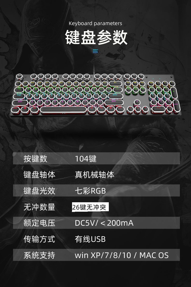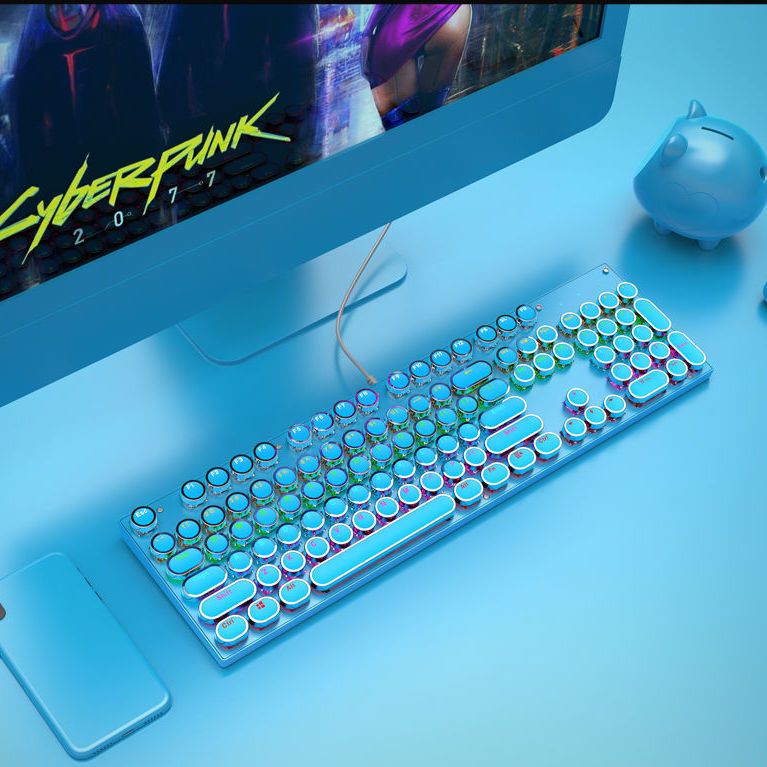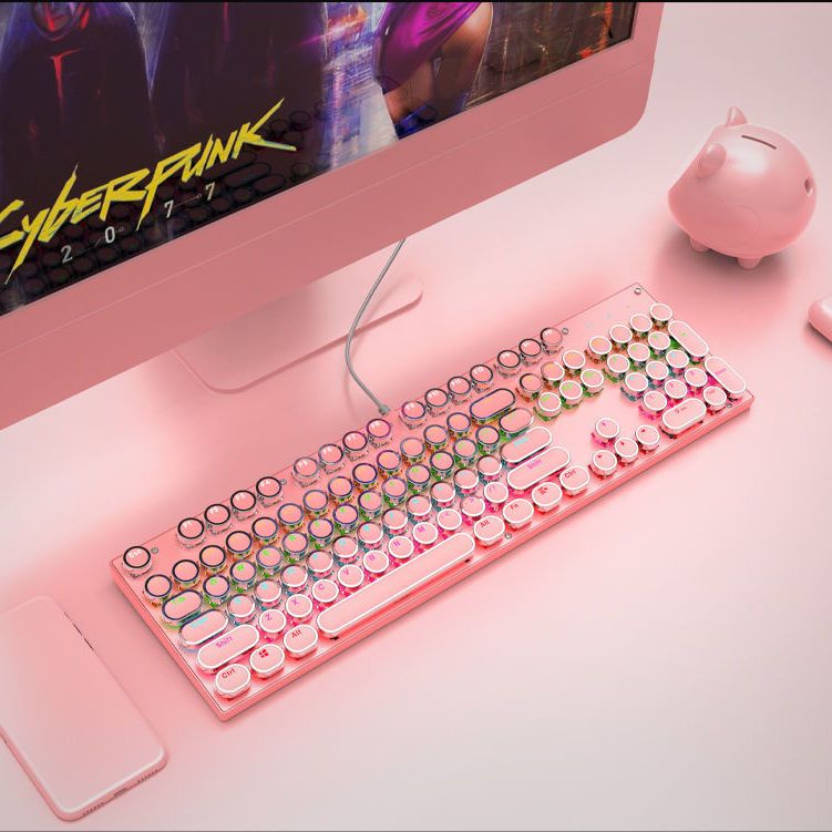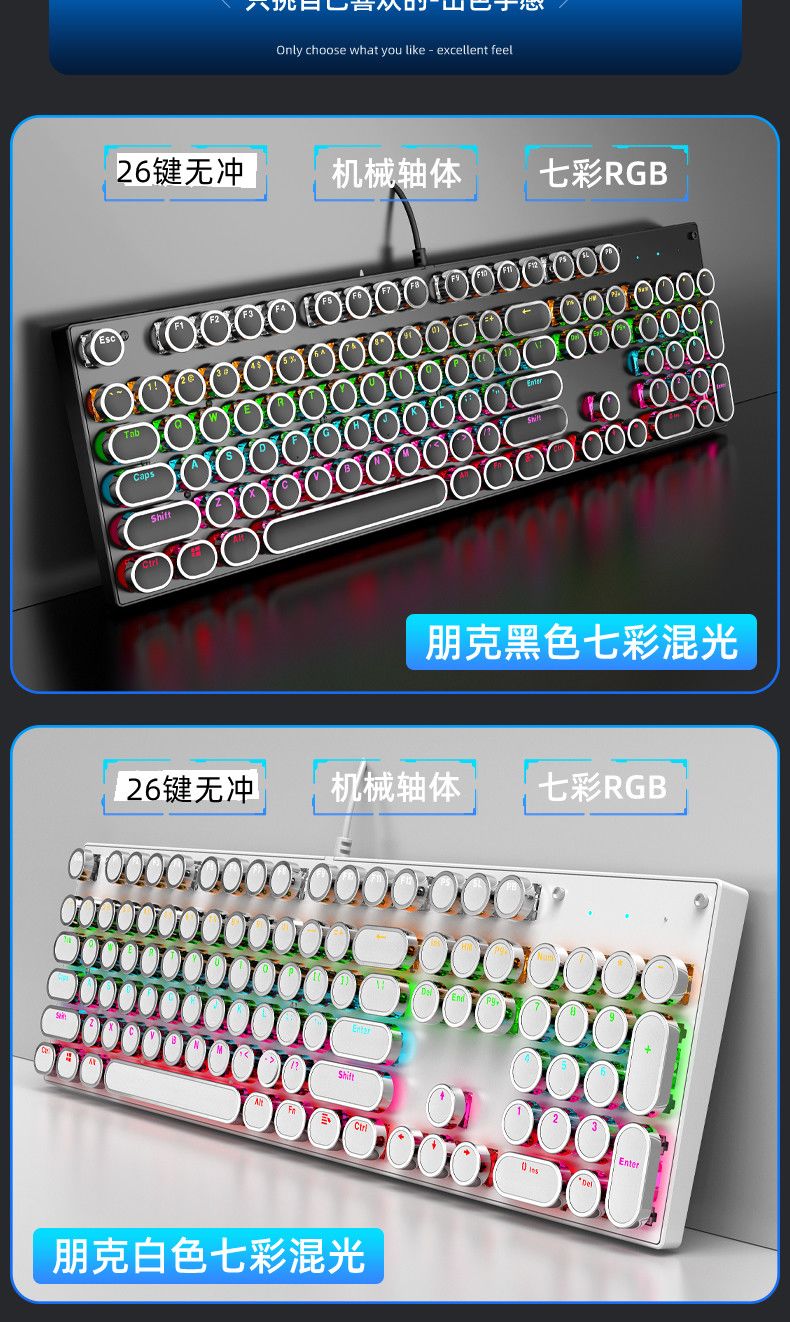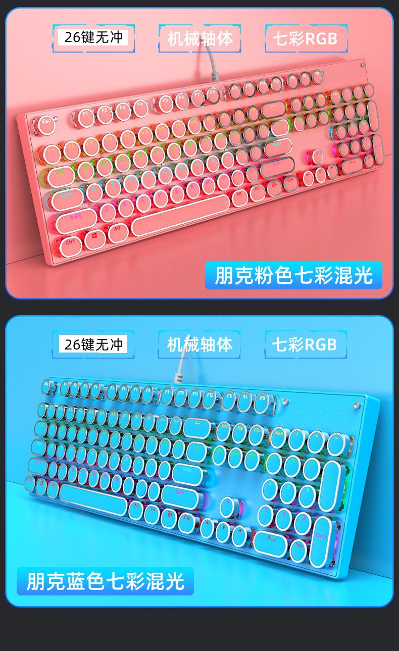 104键机械键盘有线青轴USB朋克机械键盘高颜电竞游戏电脑办公外设