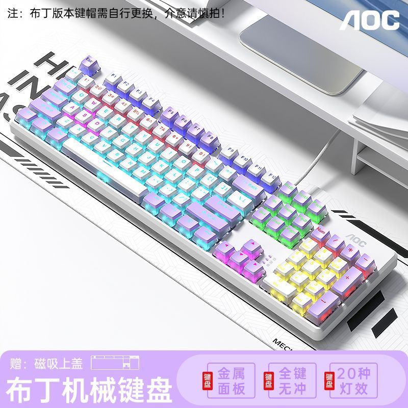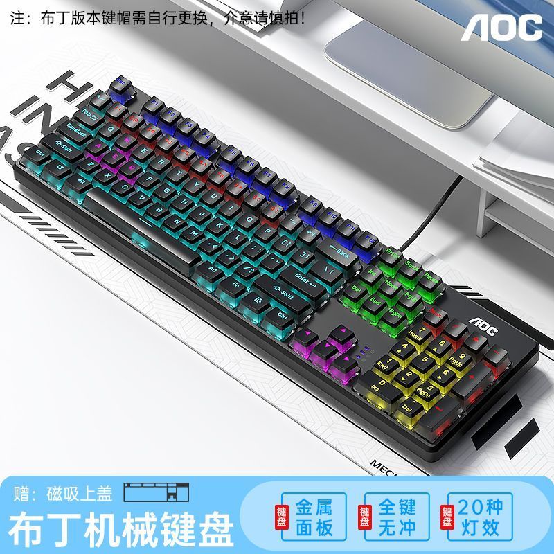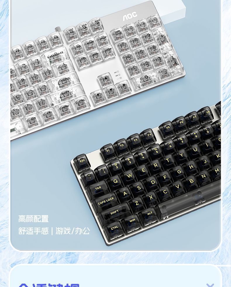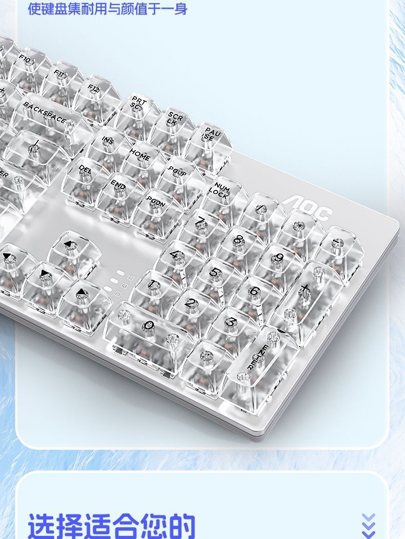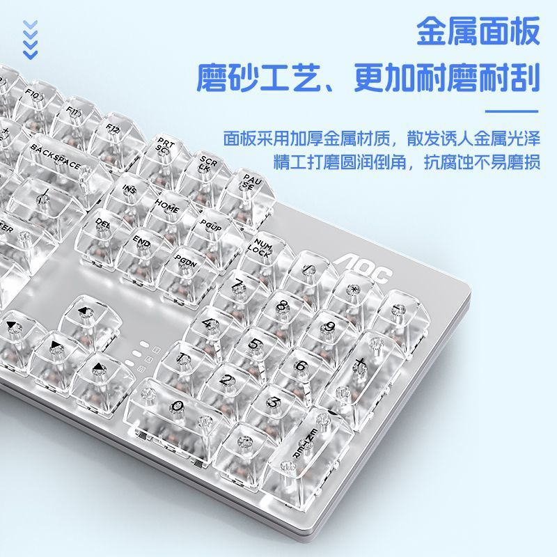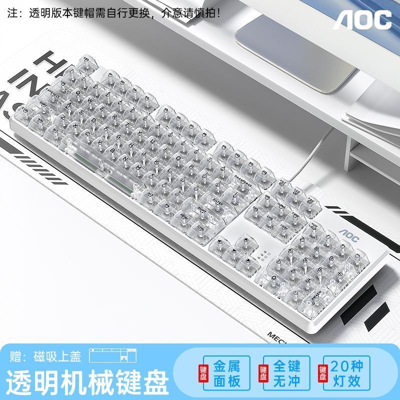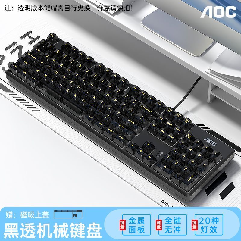 AOC透明机械键盘有线青黑茶红轴台式笔记本电脑办公游戏电竞专用