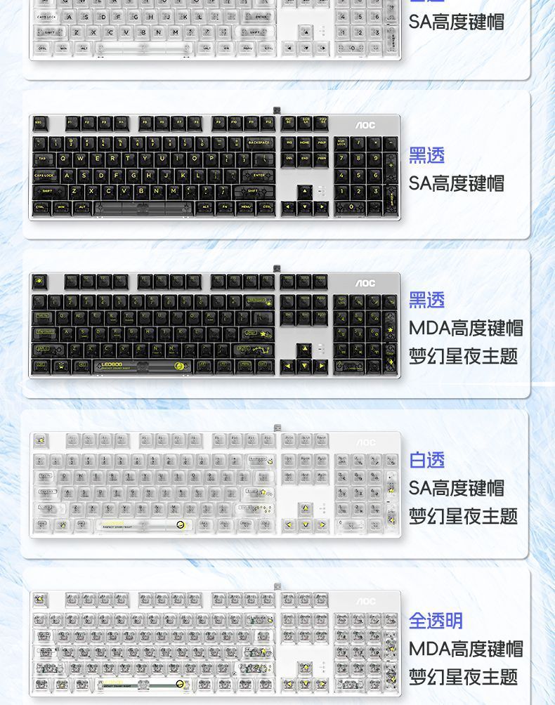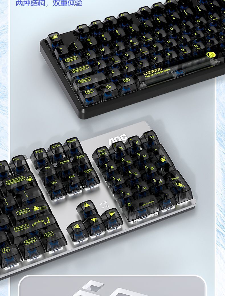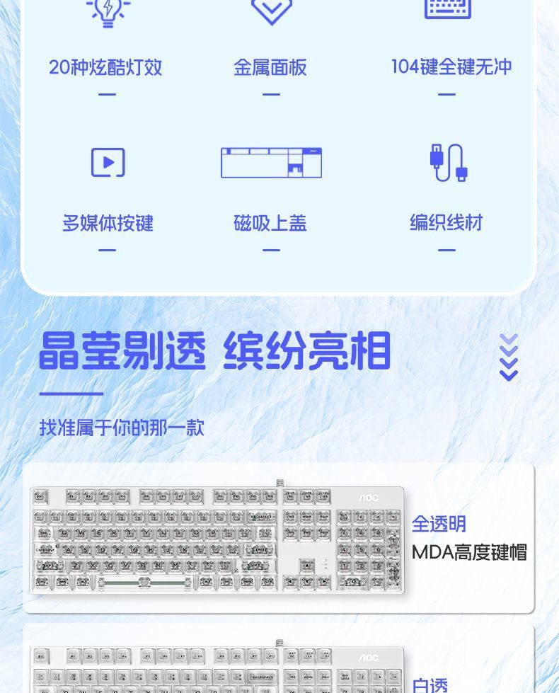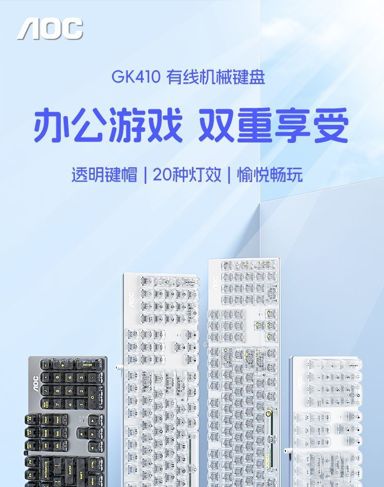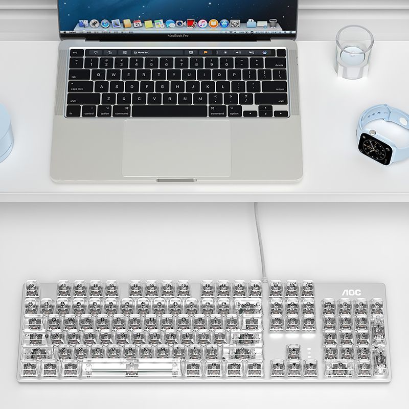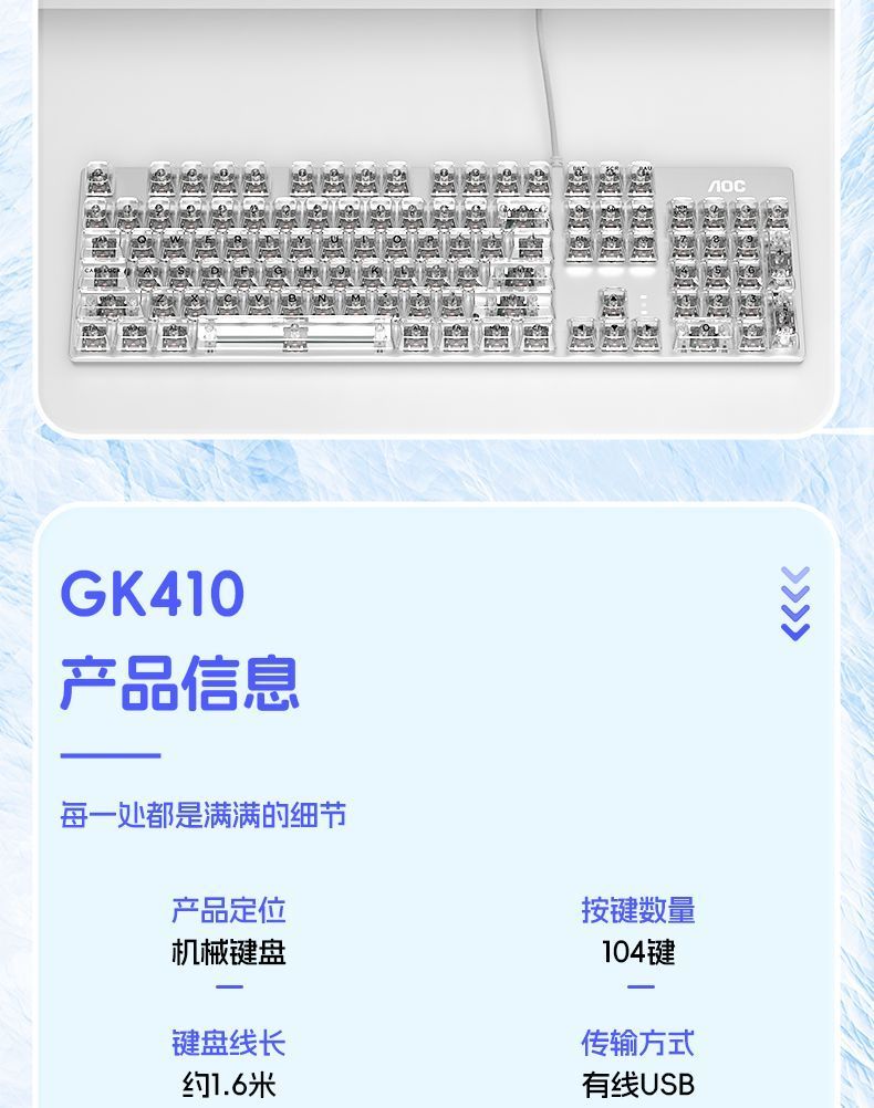 AOC透明机械键盘有线青黑茶红轴台式笔记本电脑办公游戏电竞专用