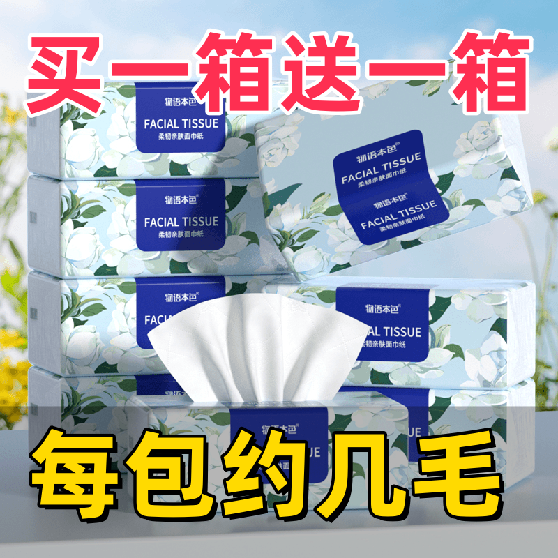 物语加量本色抽纸面巾纸纸巾卫生纸加厚大包家用餐巾纸批发整箱