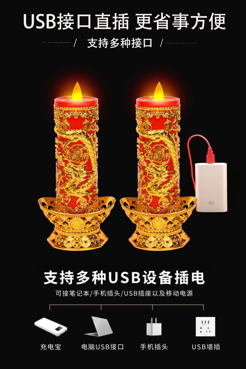 LED电烛台电子灯供财神灯长明灯佛具神台灯礼佛无烟插电两用