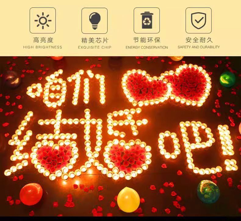 LED电子蜡烛灯爱心蜡烛房间求婚氛围灯生日惊喜派对酒店表白道具