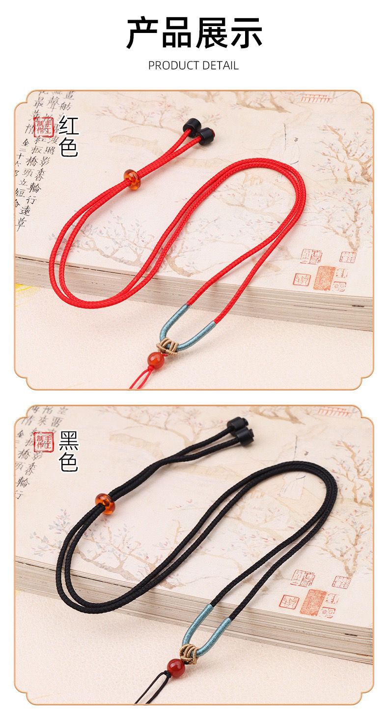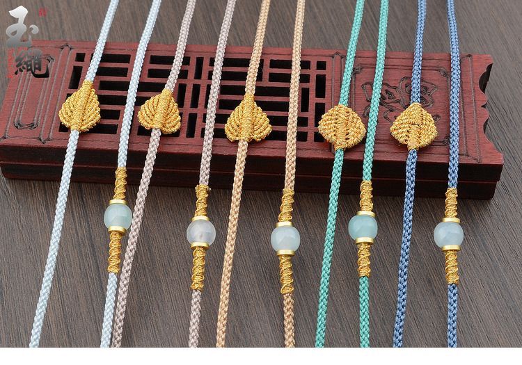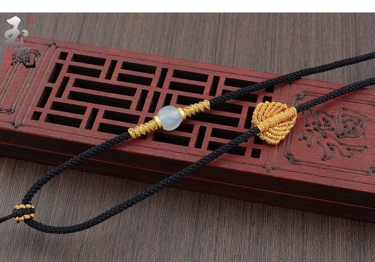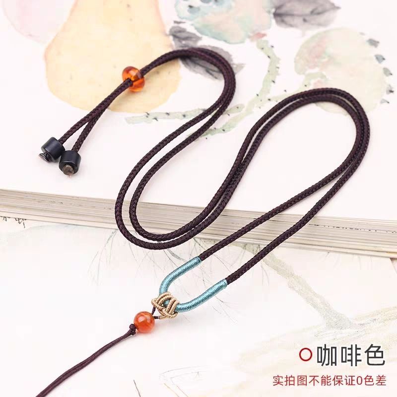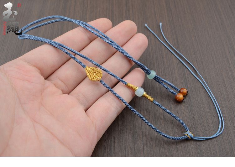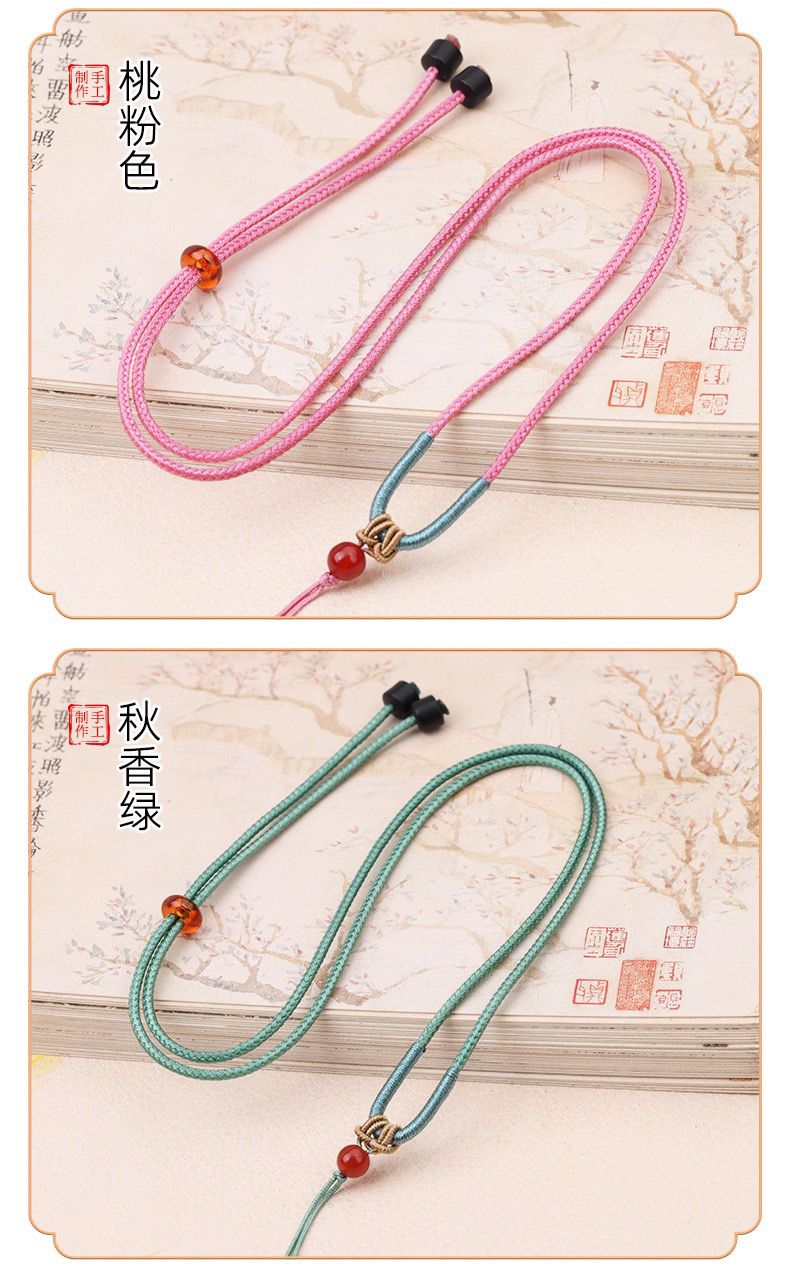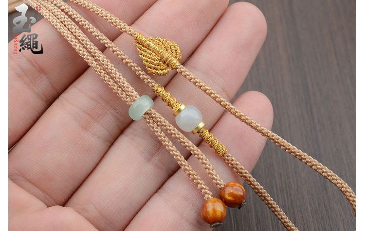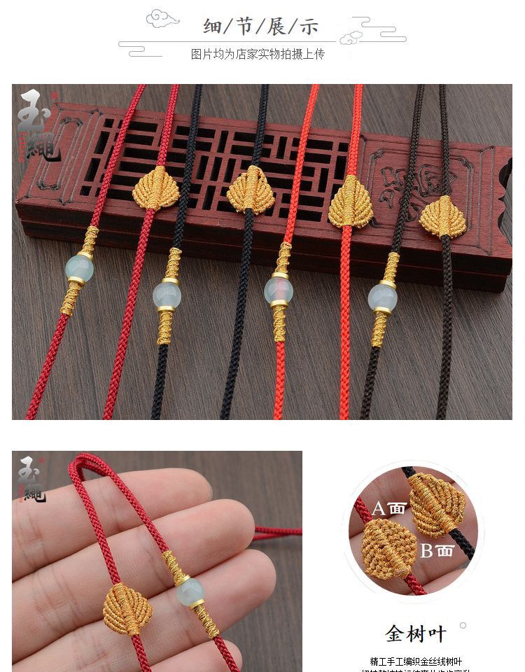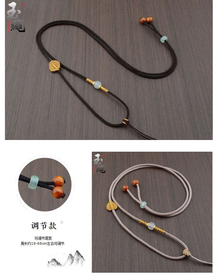 手工编织可调节黄金翡翠吊坠挂绳和田玉佩配绳女男款树叶项链绳子