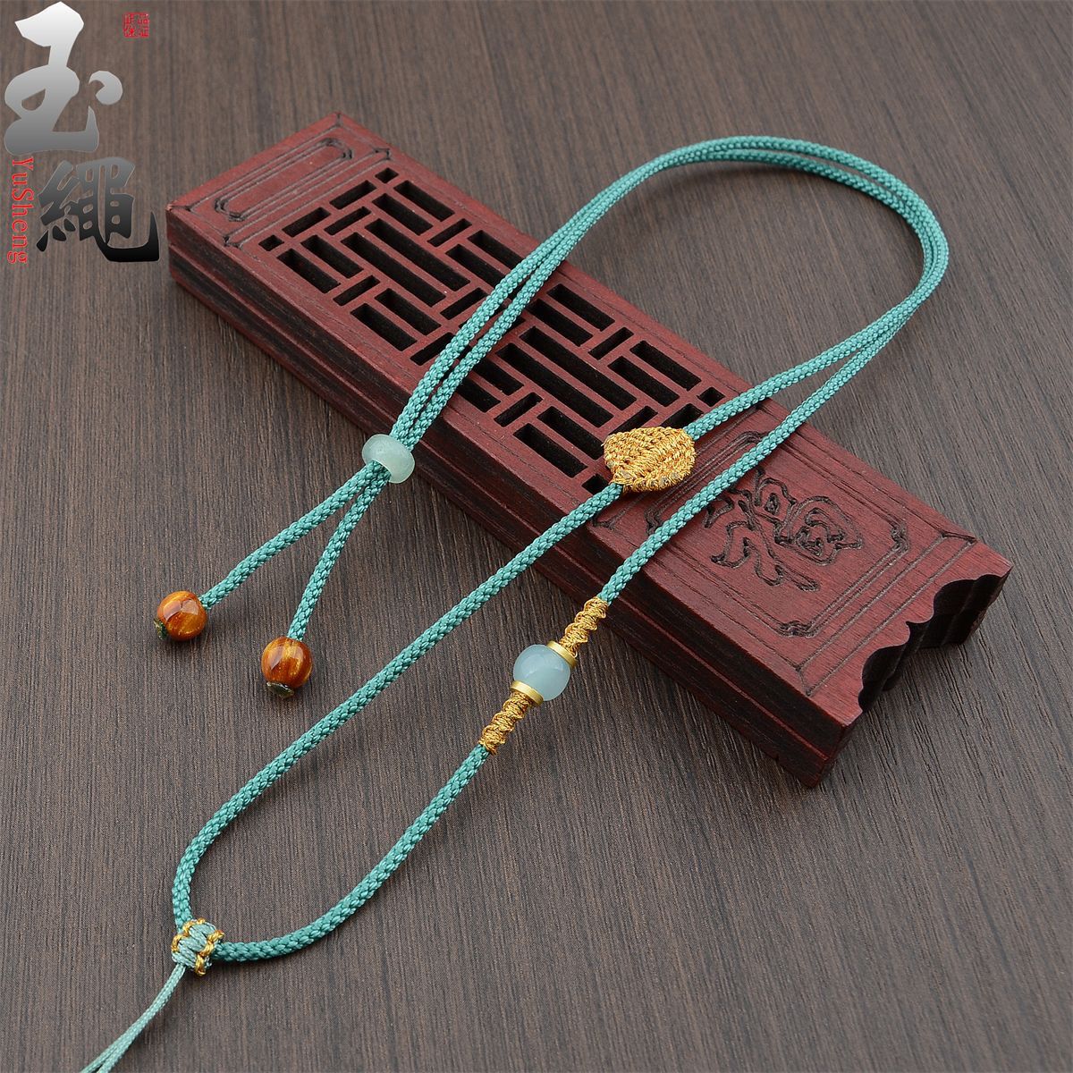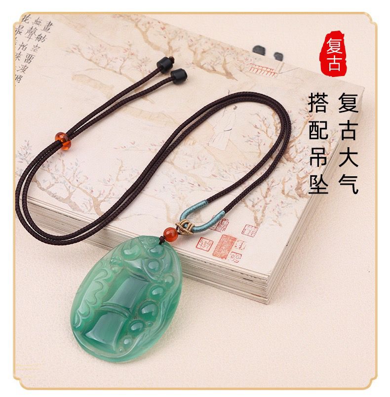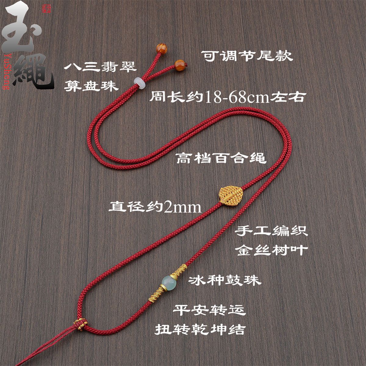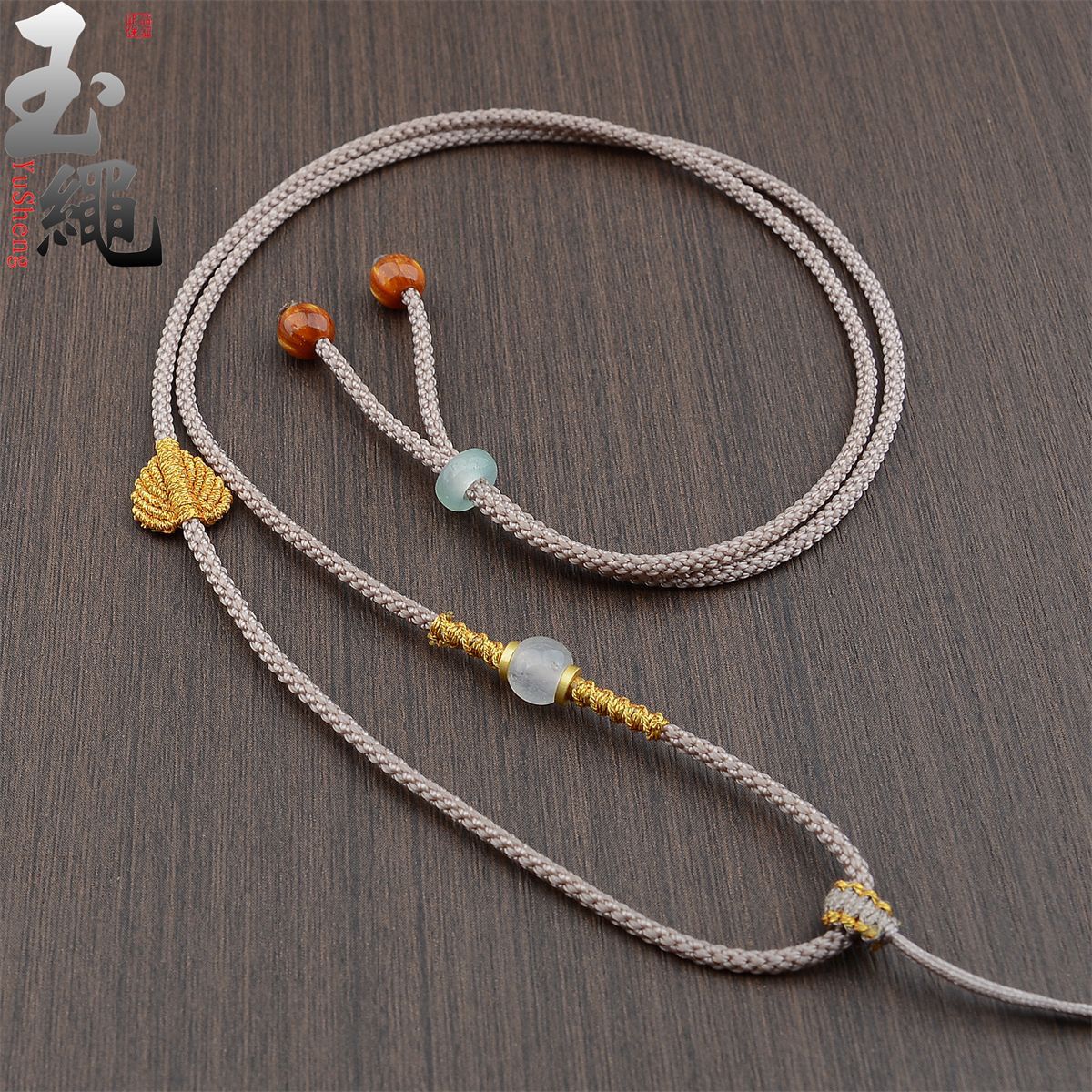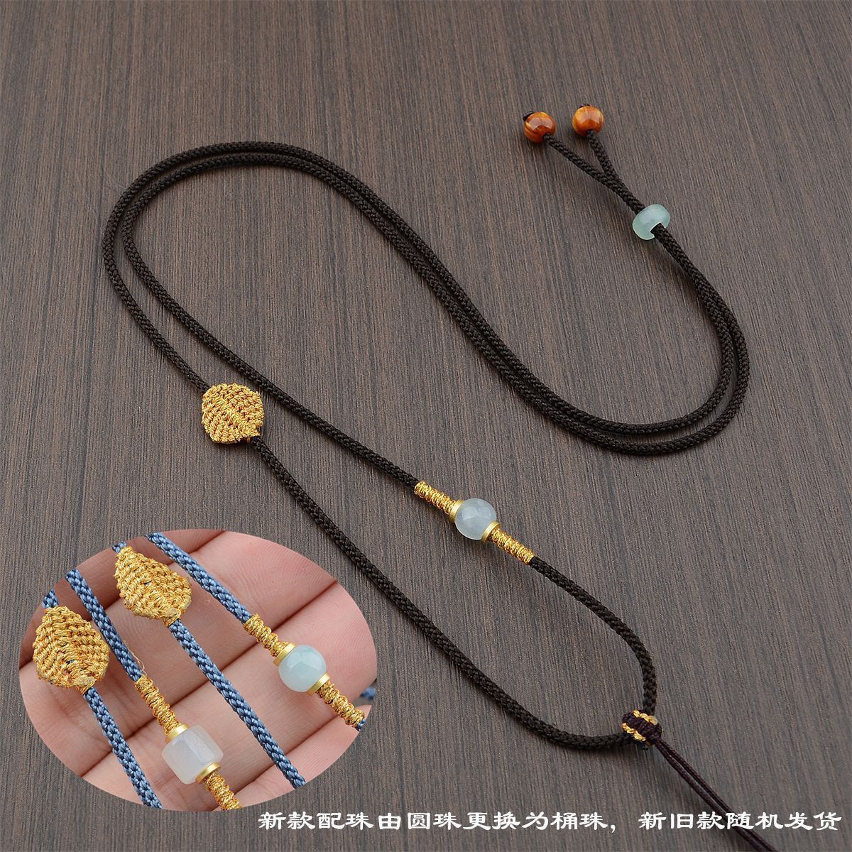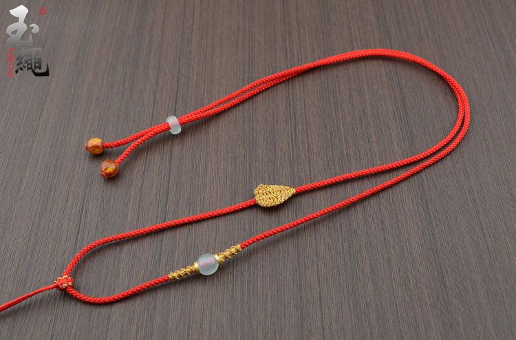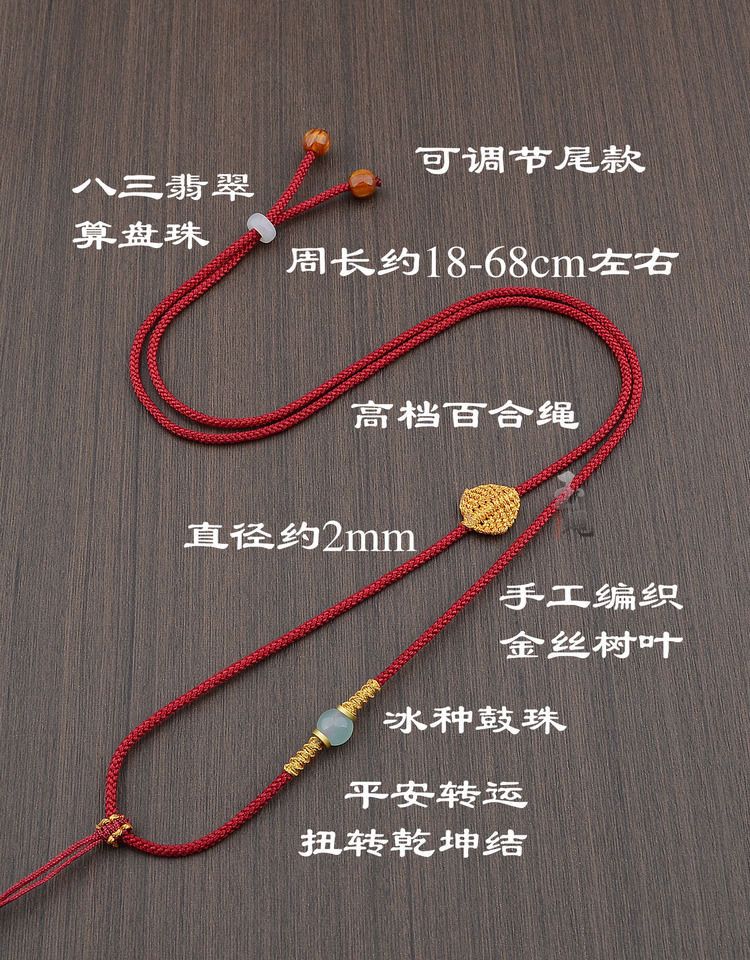 手工编织可调节黄金翡翠吊坠挂绳和田玉佩配绳女男款树叶项链绳子