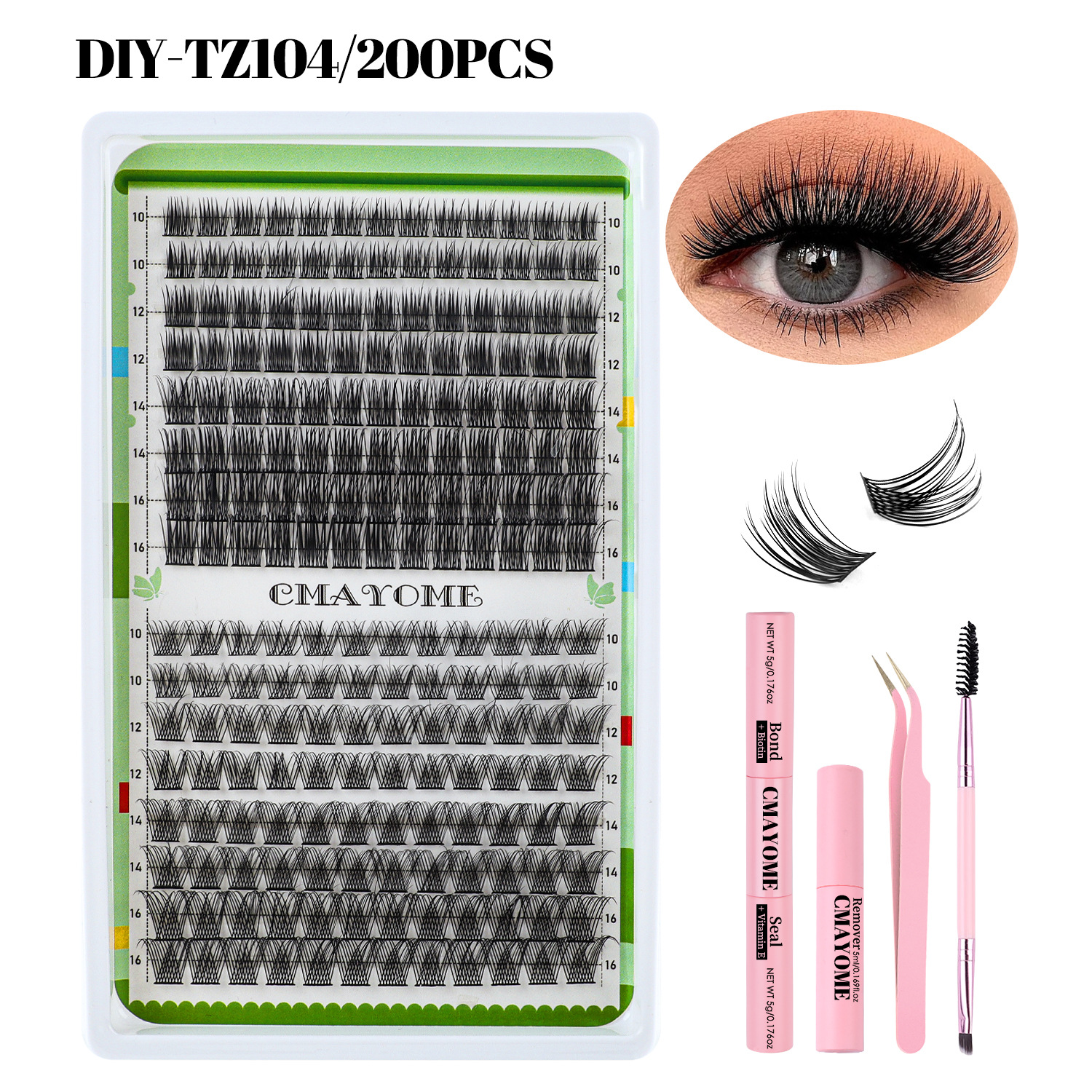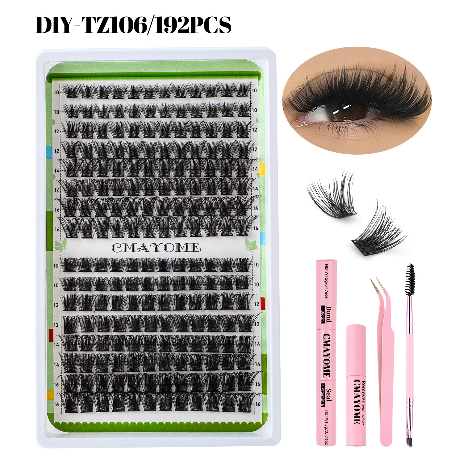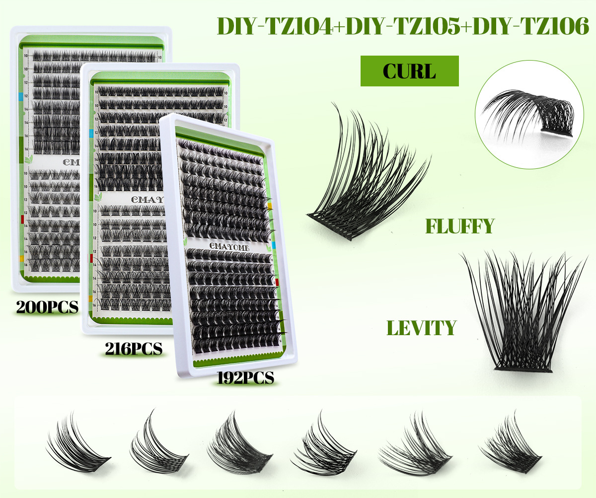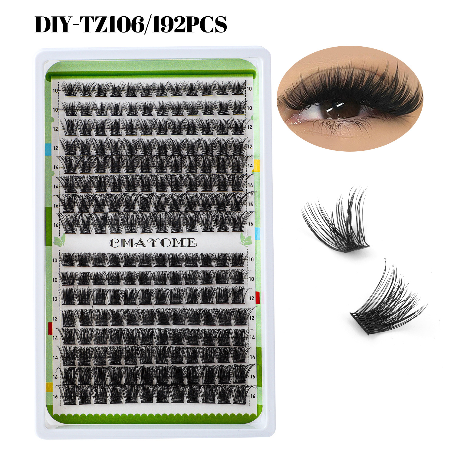 欧美跨境C曲浓密单簇假睫毛套装10-16mmDIY分段嫁接卷翘眼睫毛