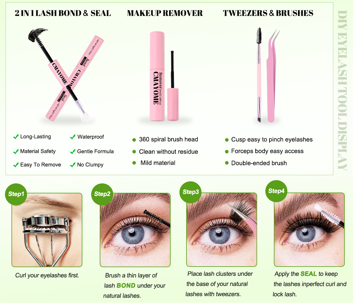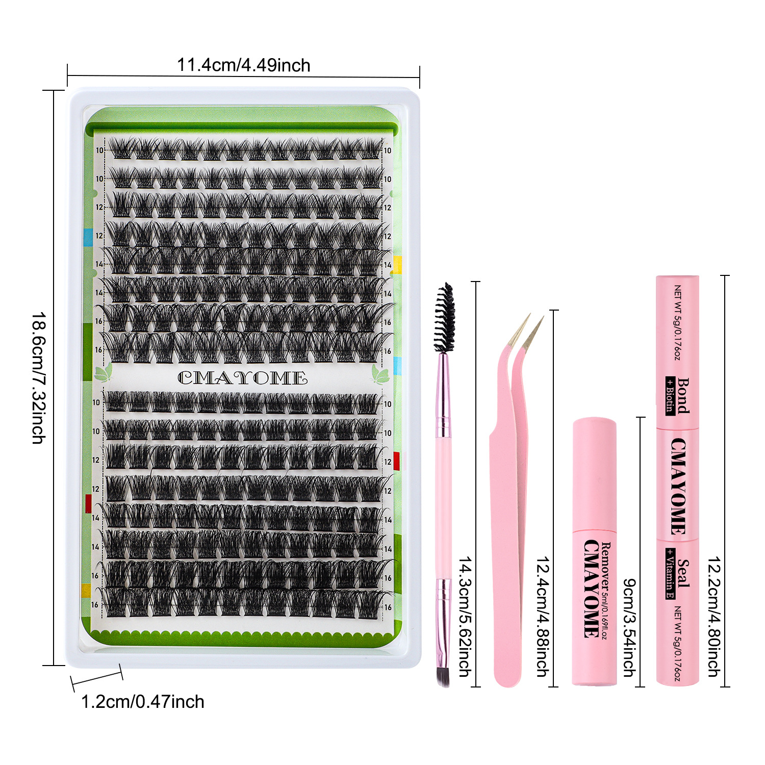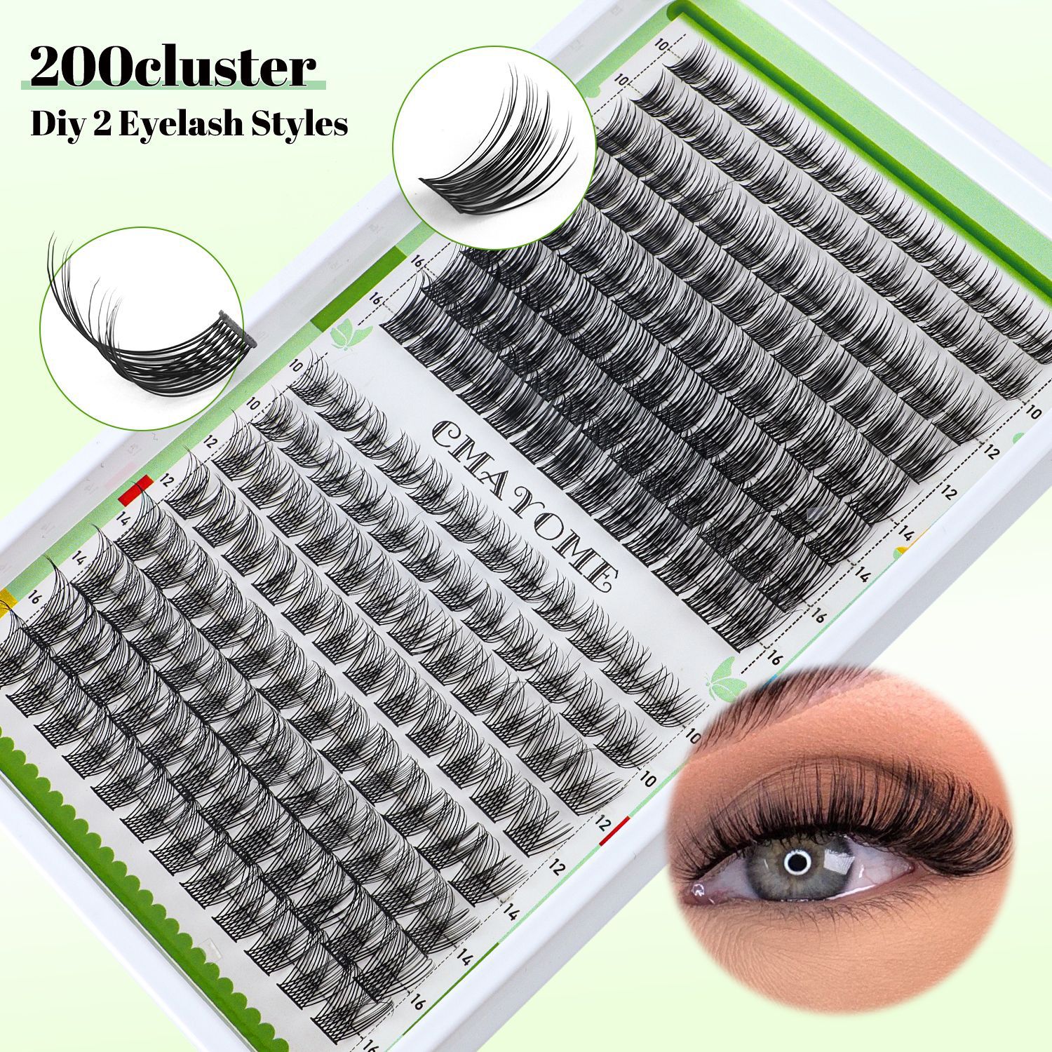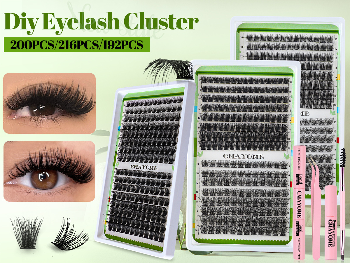 欧美跨境C曲浓密单簇假睫毛套装10-16mmDIY分段嫁接卷翘眼睫毛