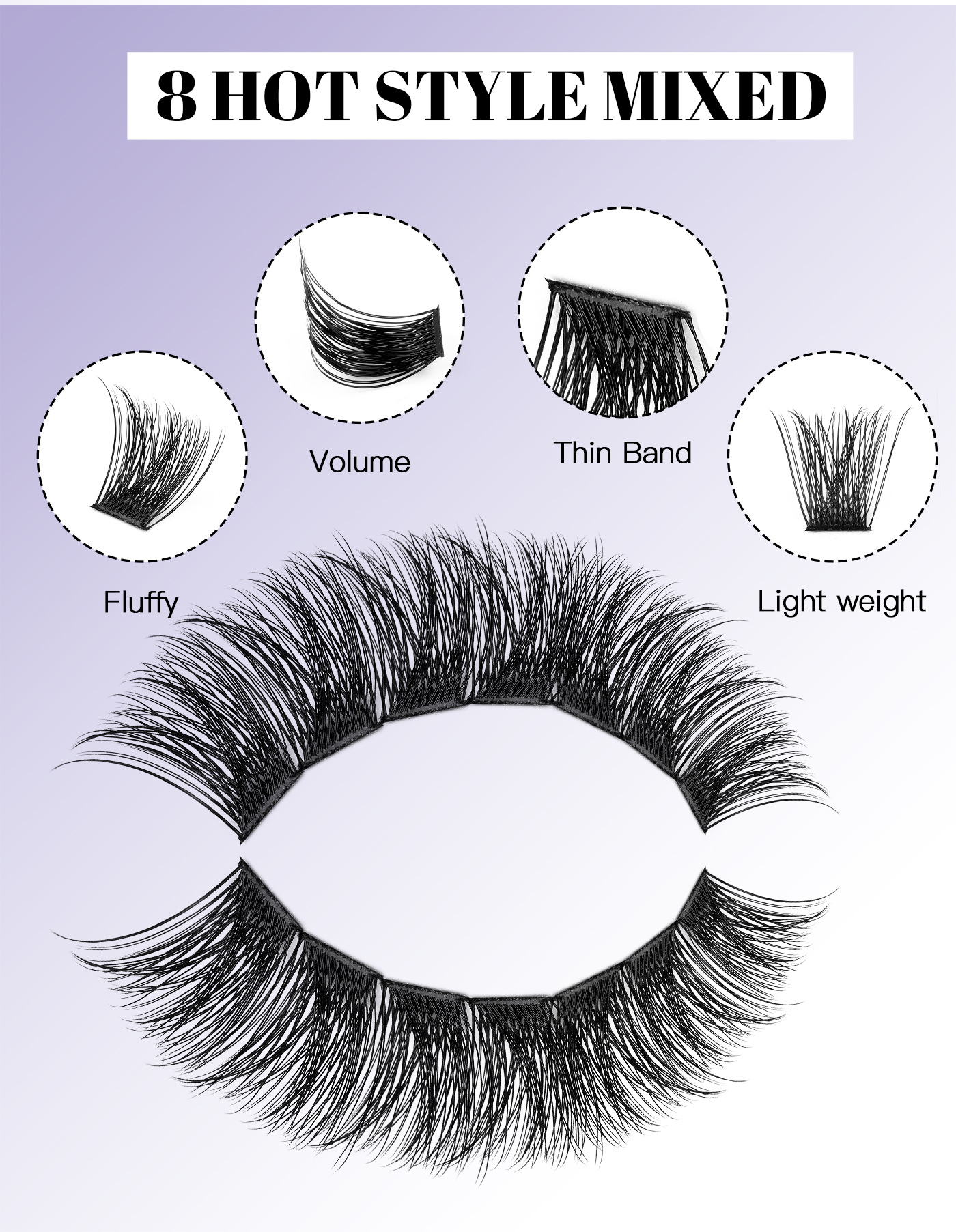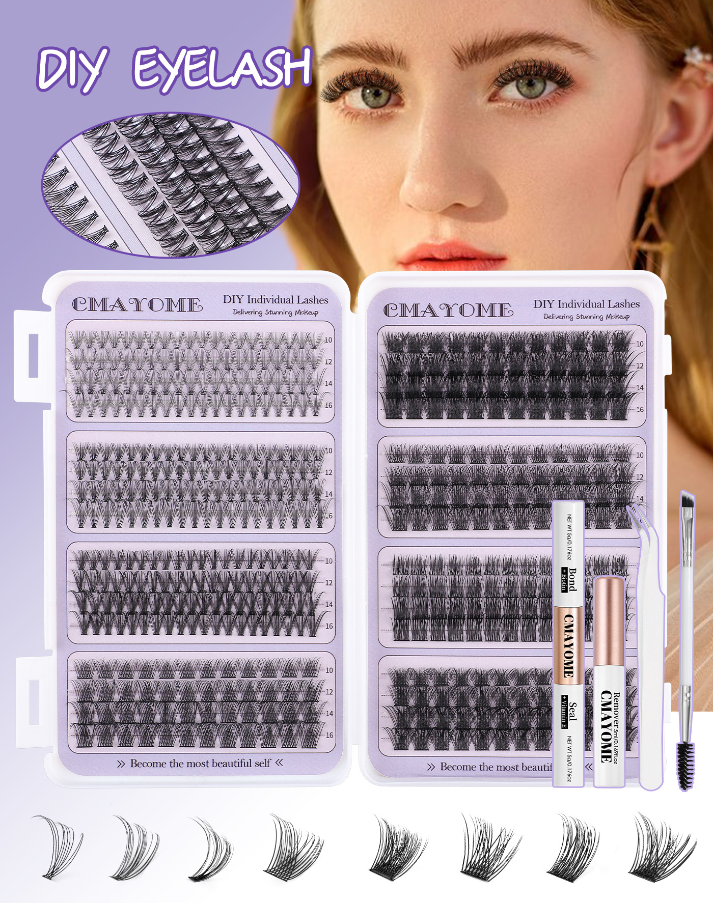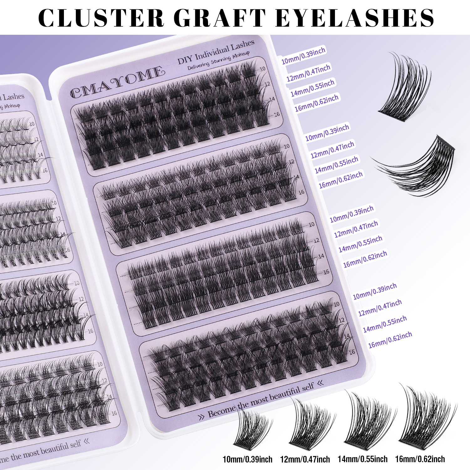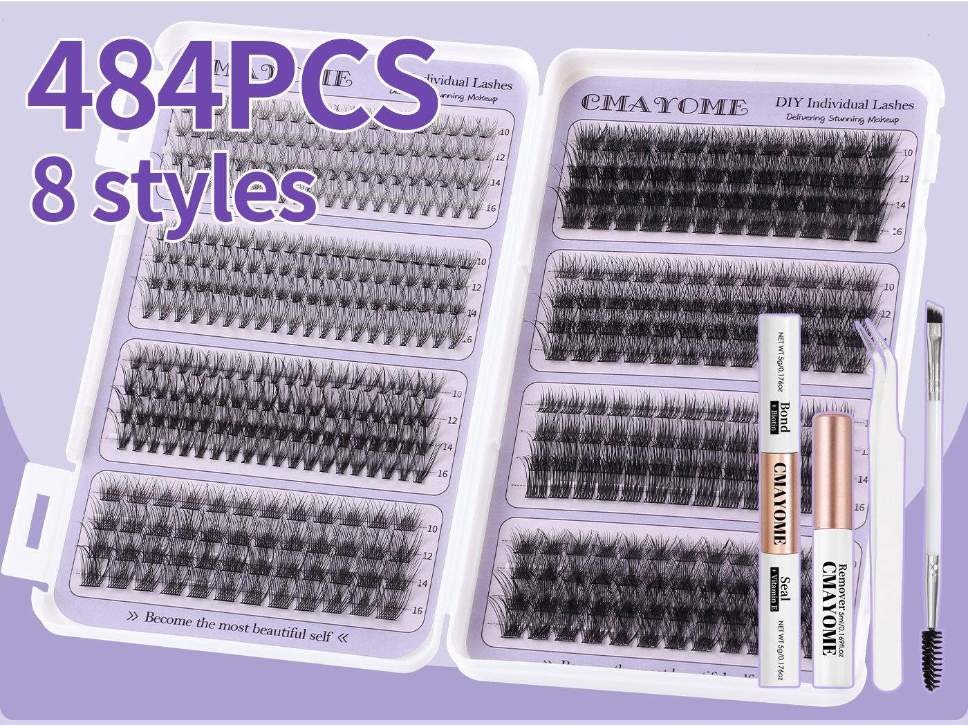 欧美外贸484簇D曲单簇假睫毛套装8-16mmDIY分段式浓密卷翘眼睫毛