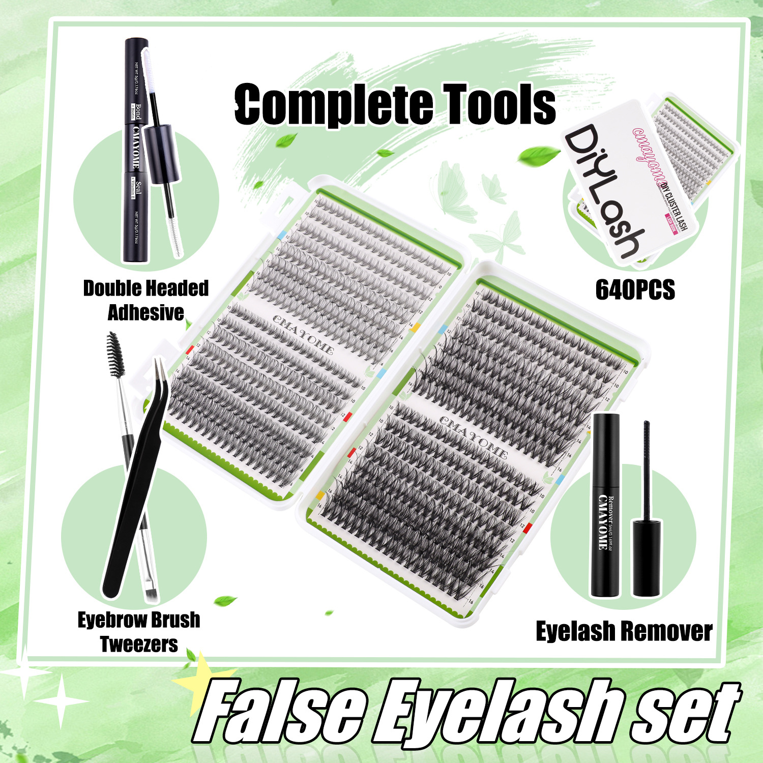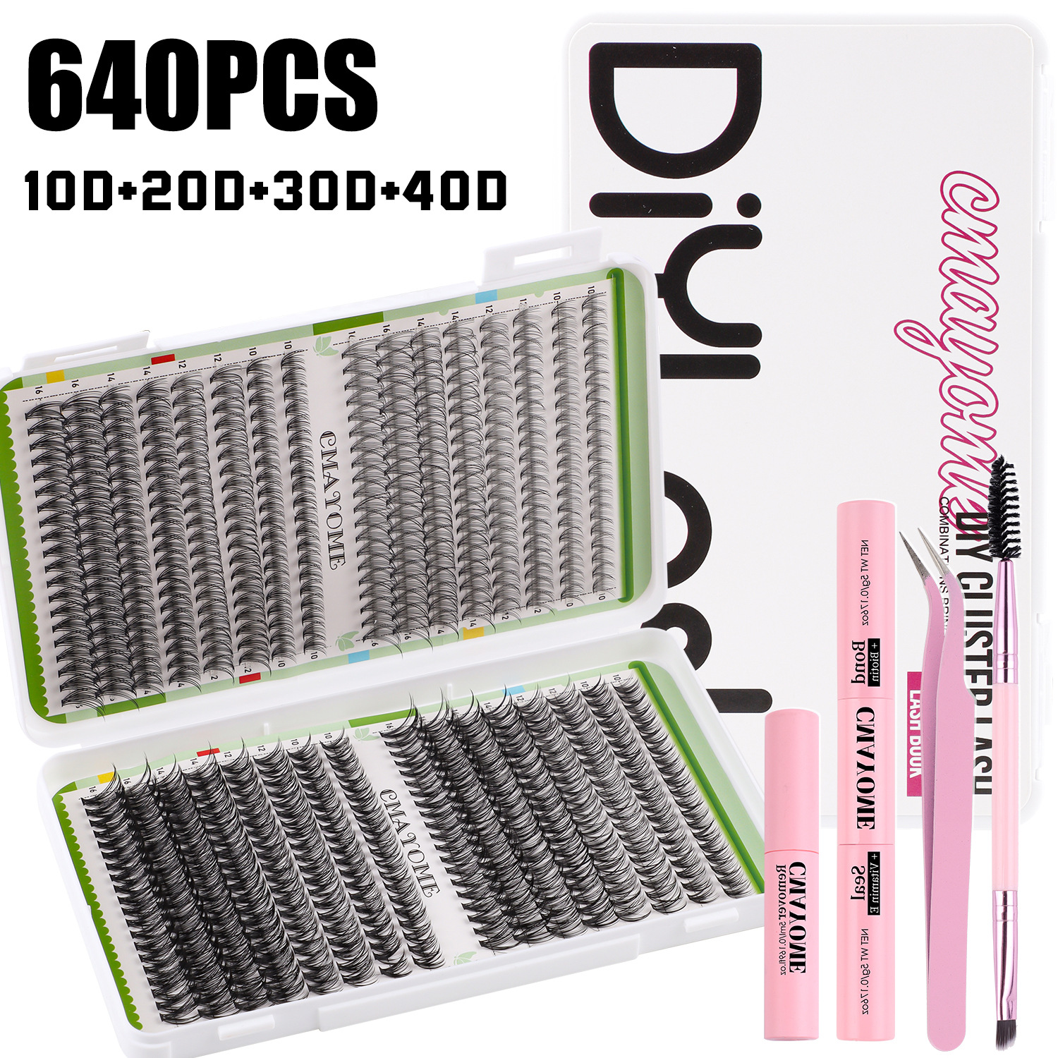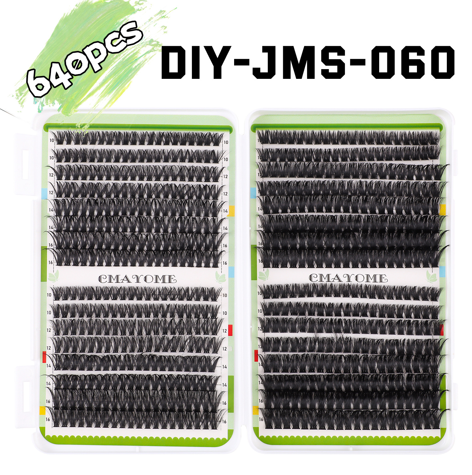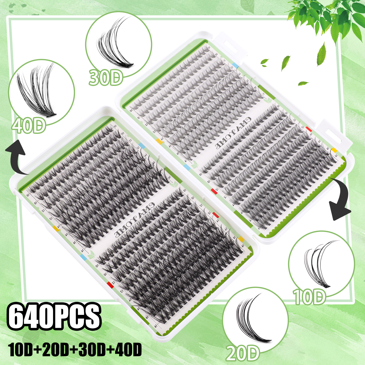 外贸跨境640簇D曲单簇假睫毛套装10-16mmDIY分段式嫁接浓密眼睫毛