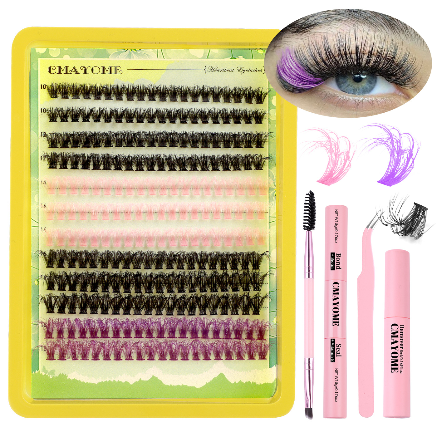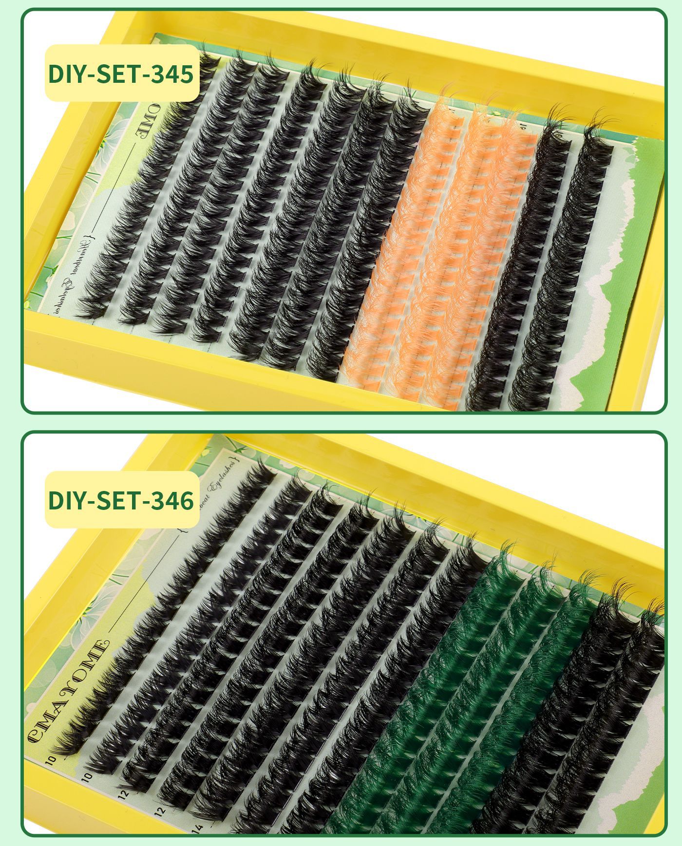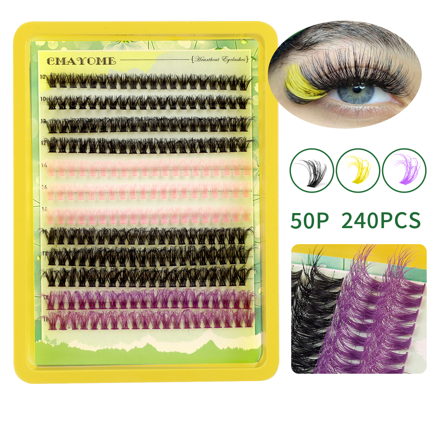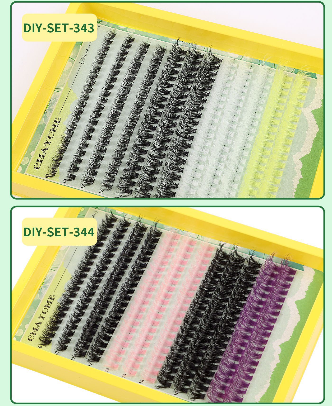 外贸跨境彩色单簇D曲假睫毛套装10-18mmDIY分段式嫁接浓密眼睫毛