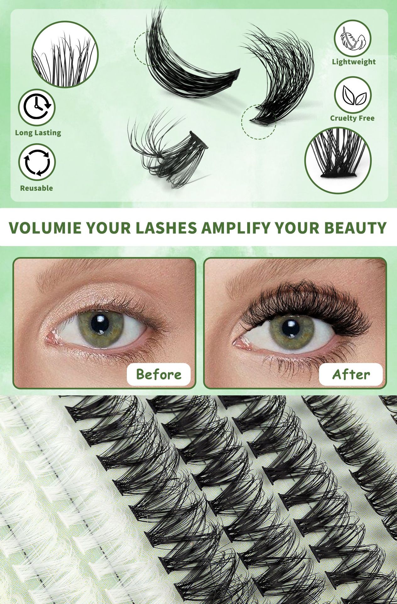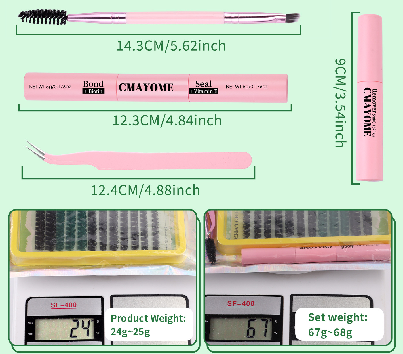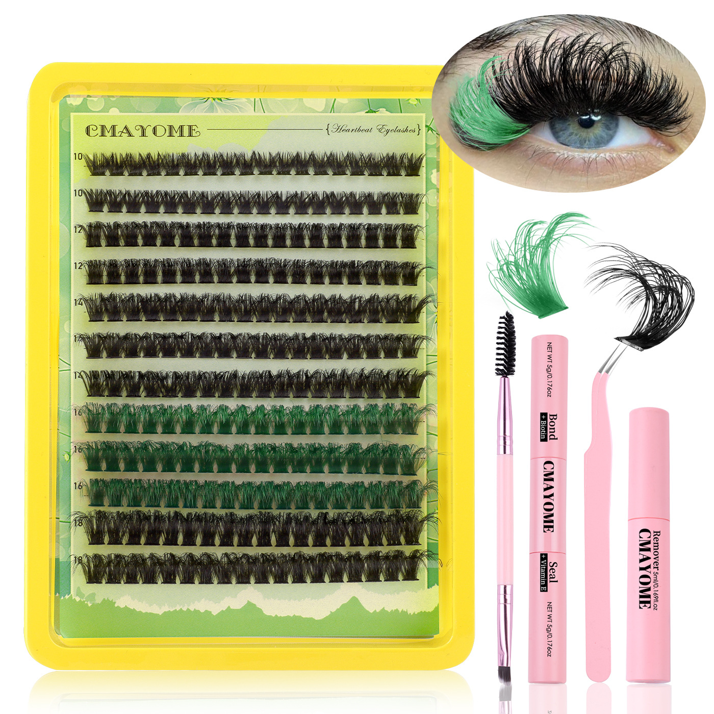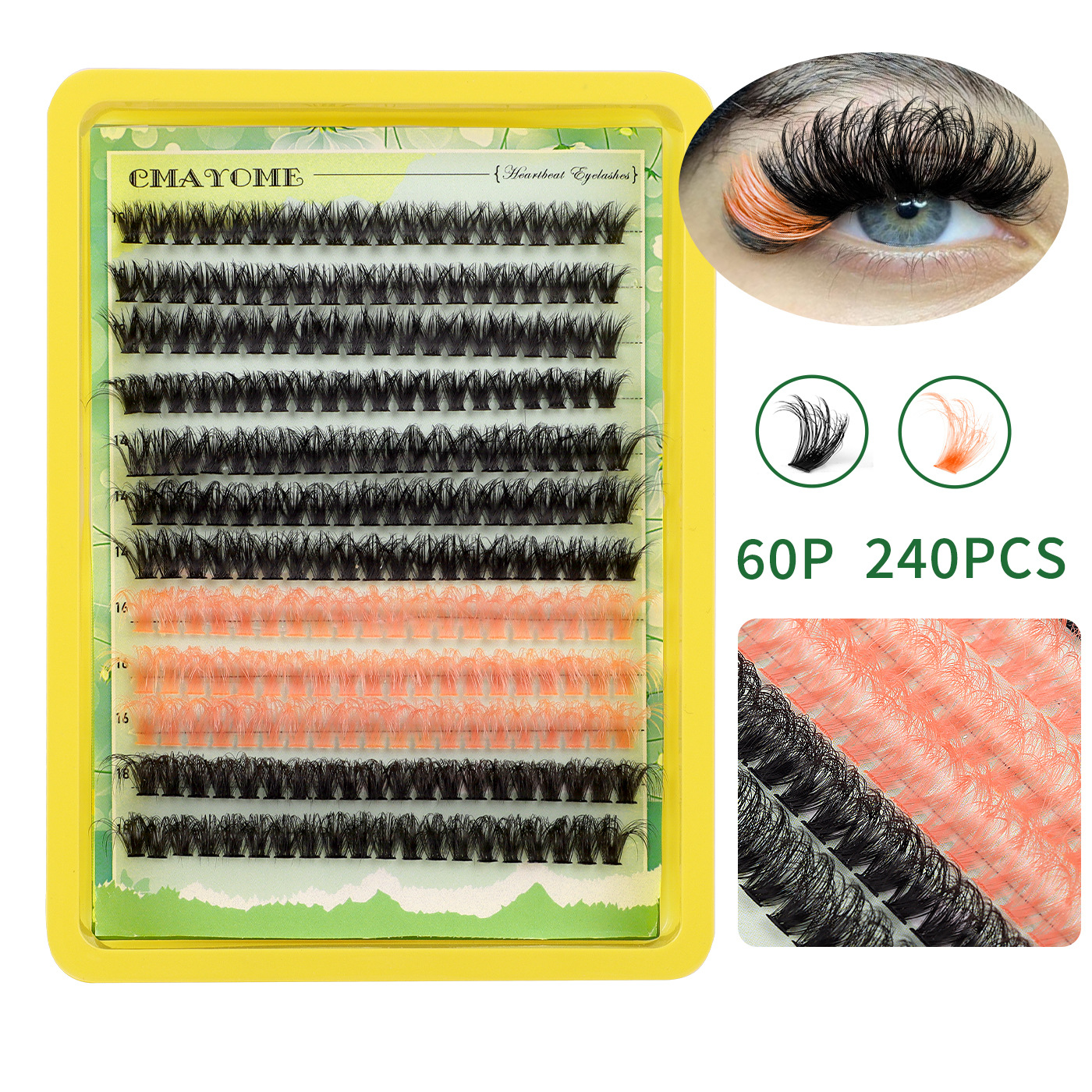 外贸跨境彩色单簇D曲假睫毛套装10-18mmDIY分段式嫁接浓密眼睫毛