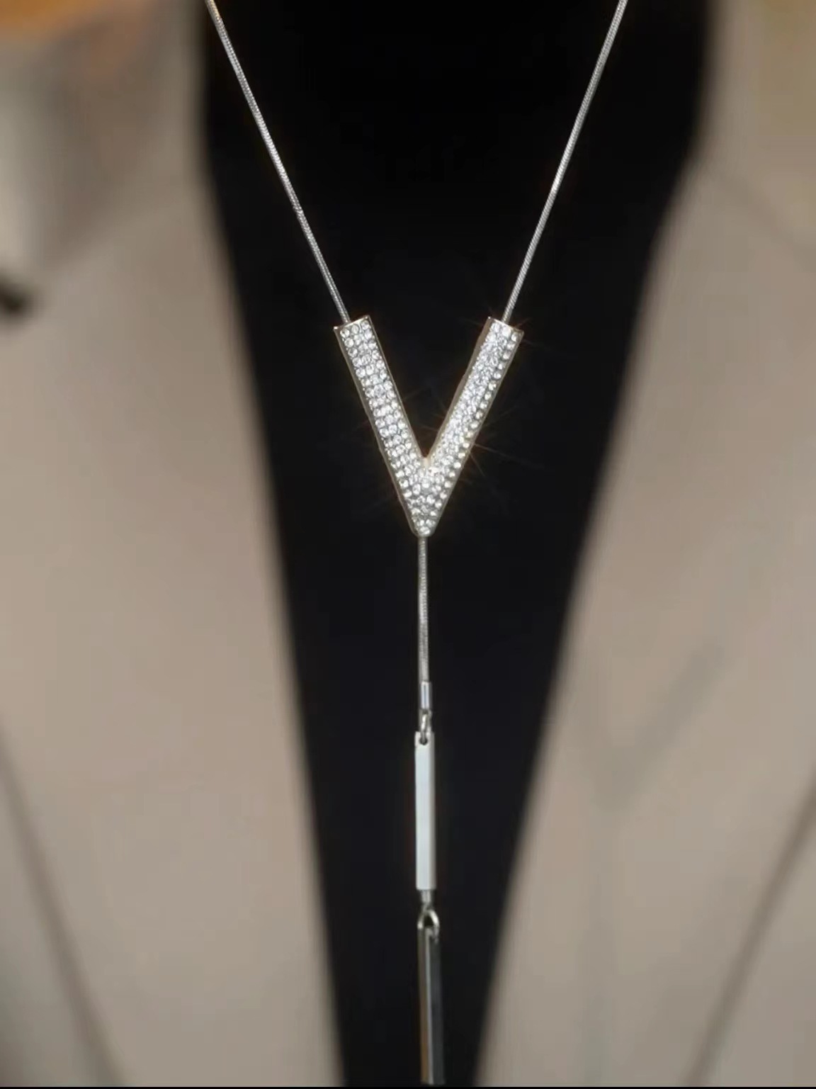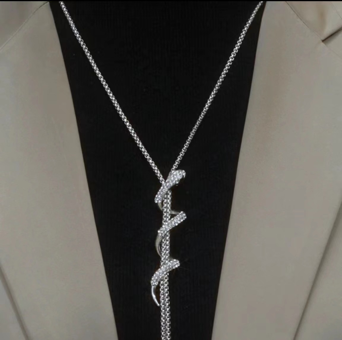 韩版秋冬水晶毛衣链项链批发高级感女长链百搭流苏珍珠吊坠配饰品