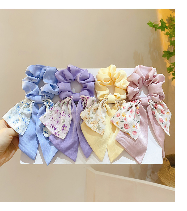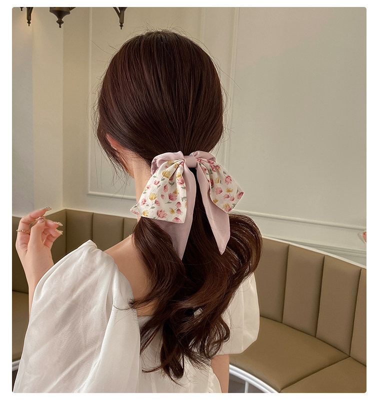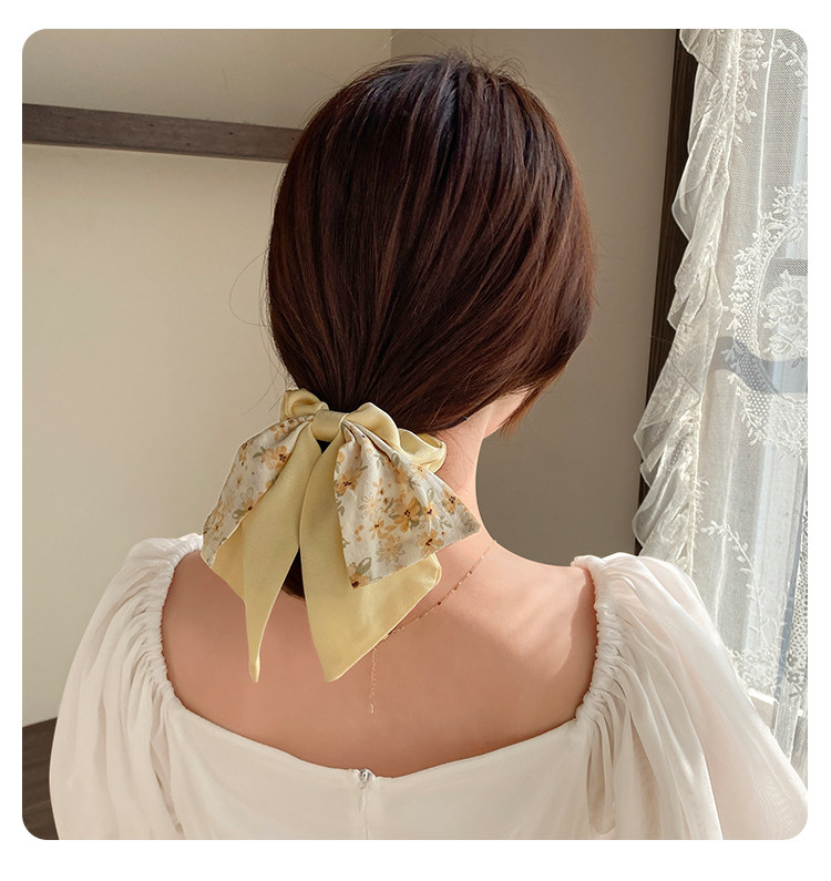新款法式碎花蝴蝶结大肠发圈丝巾发带气质女绑发头绳复古飘带头饰