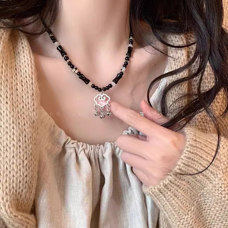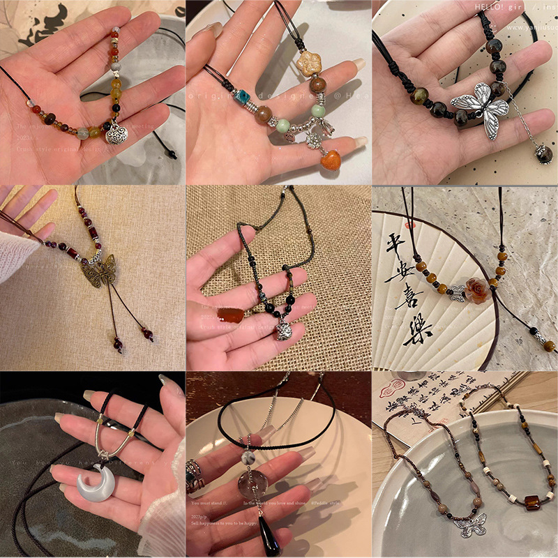 新中式复古蝴蝶串珠项链女禅意民族风锁骨链叠戴百搭高级感配饰品