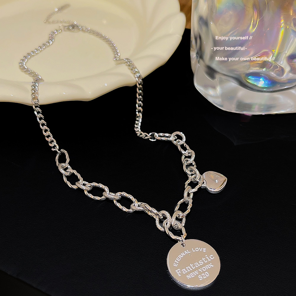 时尚爱心钛钢项链小众设计感饰品女高级感锁骨链嘻哈风毛衣链批发