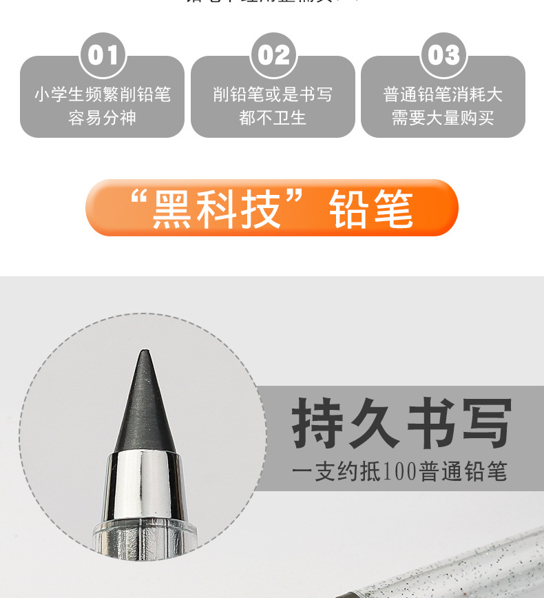 星空新款免削铅笔永恒不易断不要削铅笔书写绘画耐磨可替换铅头