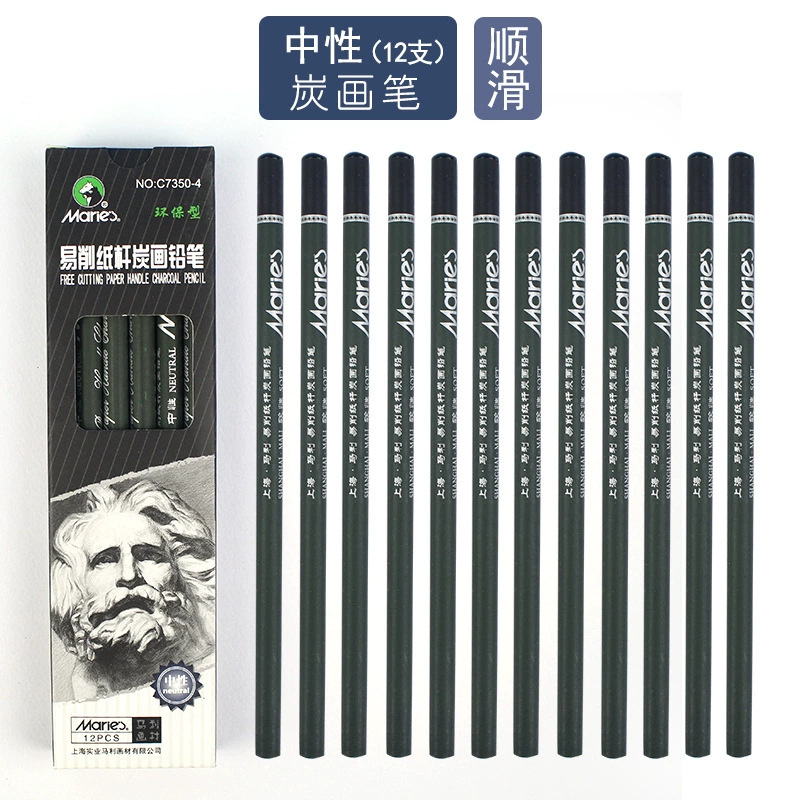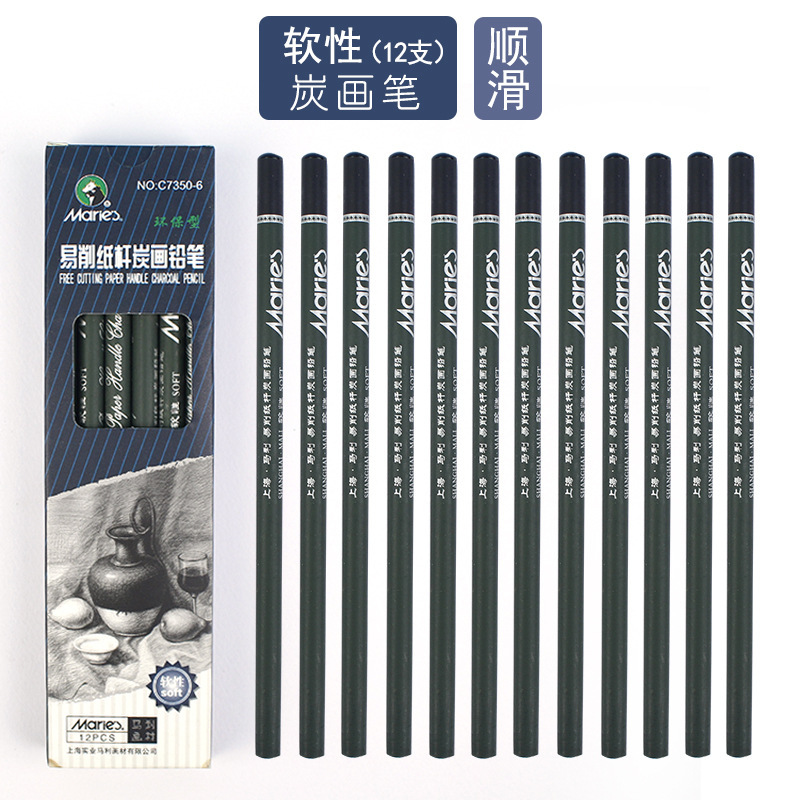 马利素描铅笔美术生绘图2B炭笔C7401硬中软碳笔4B绘画素描笔盒装