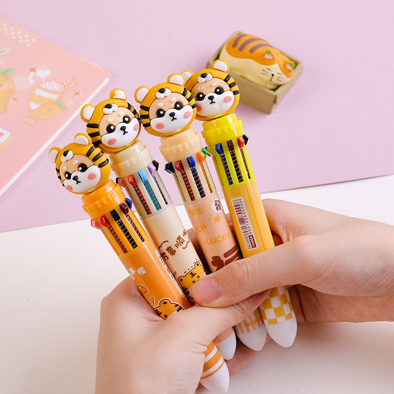 网红小清新创意可爱新款油笔十色网红多功能多色合一10色圆珠笔批