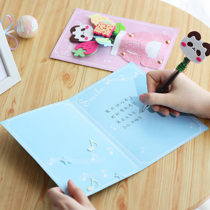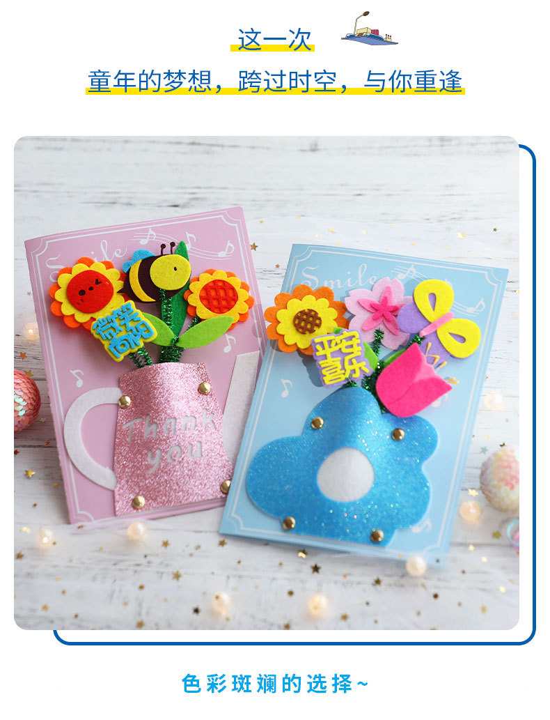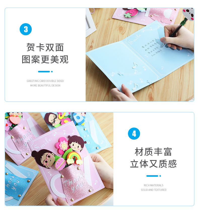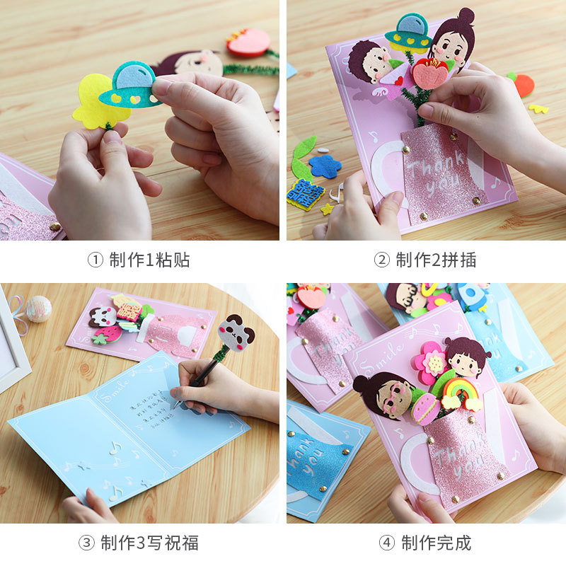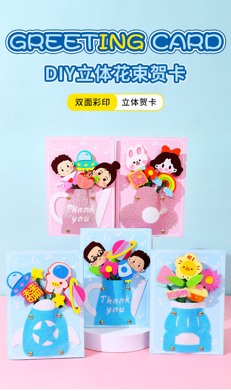 卡通生日祝福贺卡儿童手工diy材料包创意礼物立体贺卡卡片批发