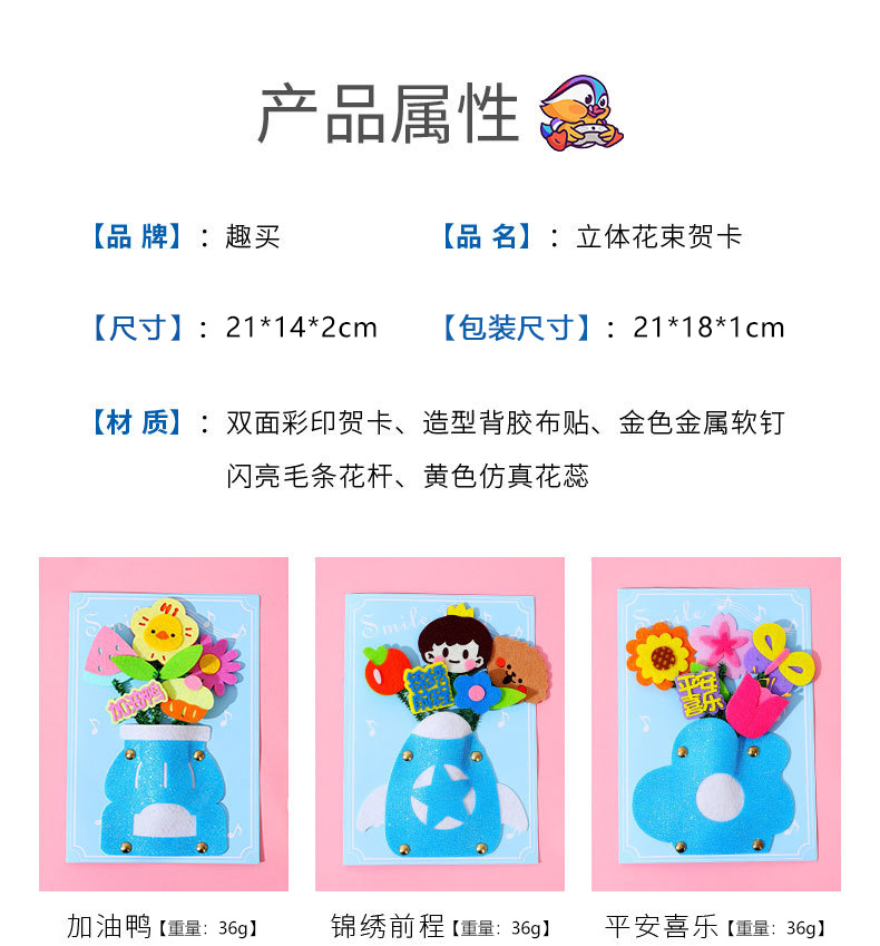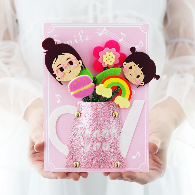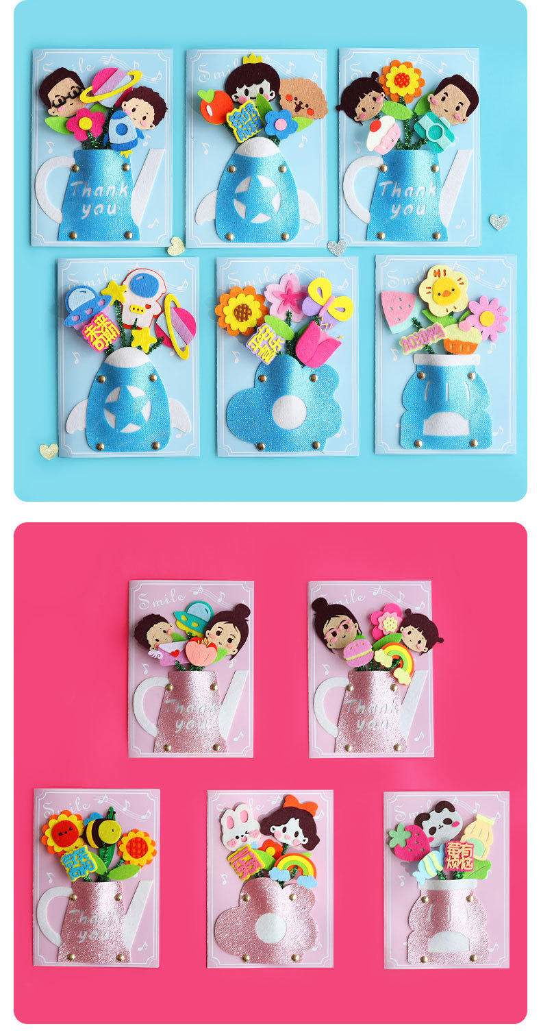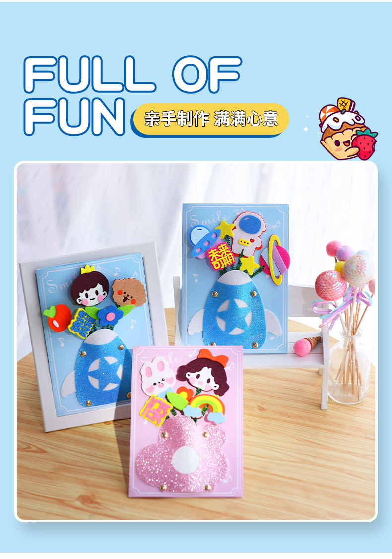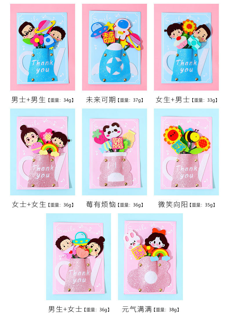 卡通生日祝福贺卡儿童手工diy材料包创意礼物立体贺卡卡片批发