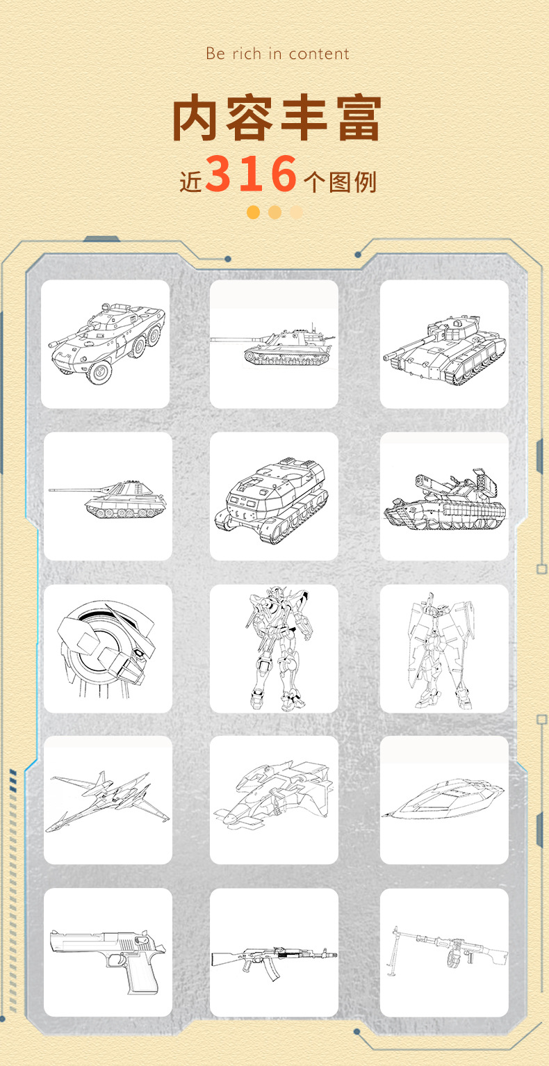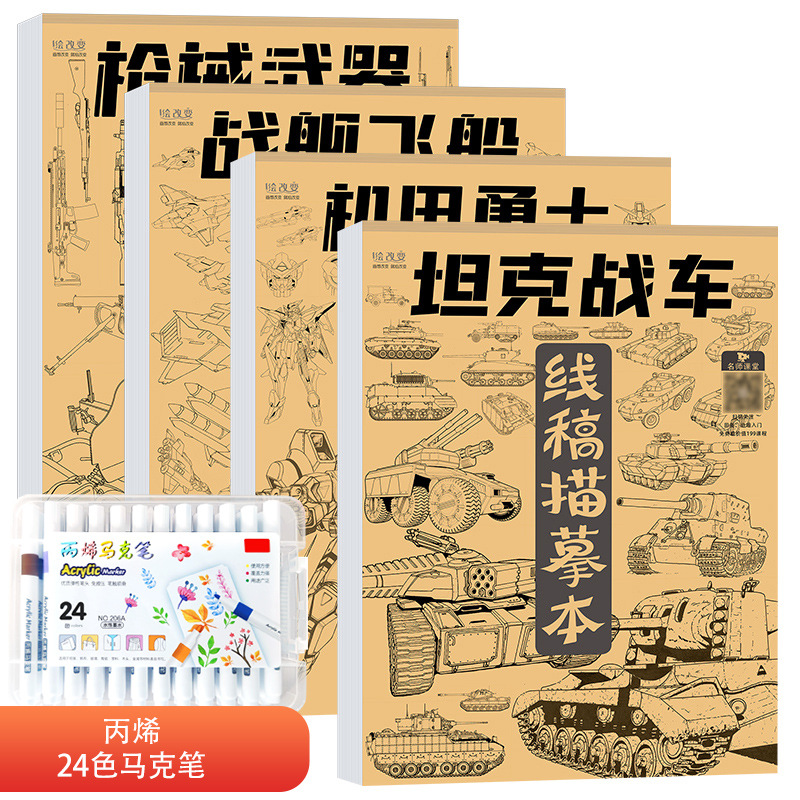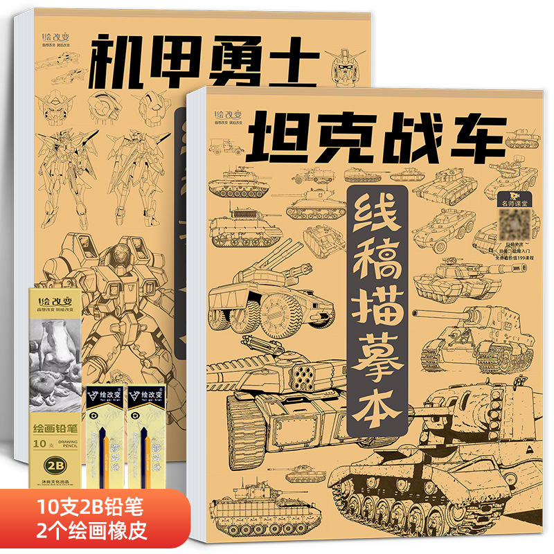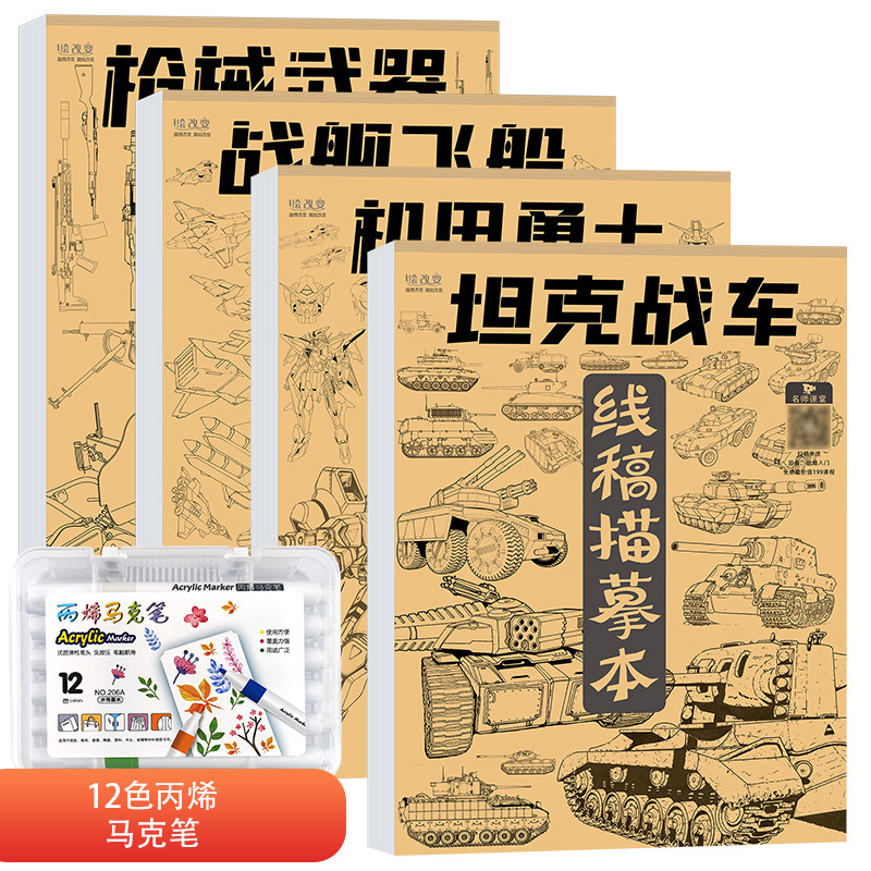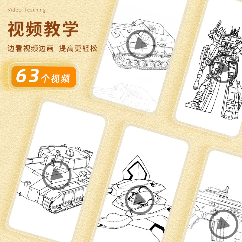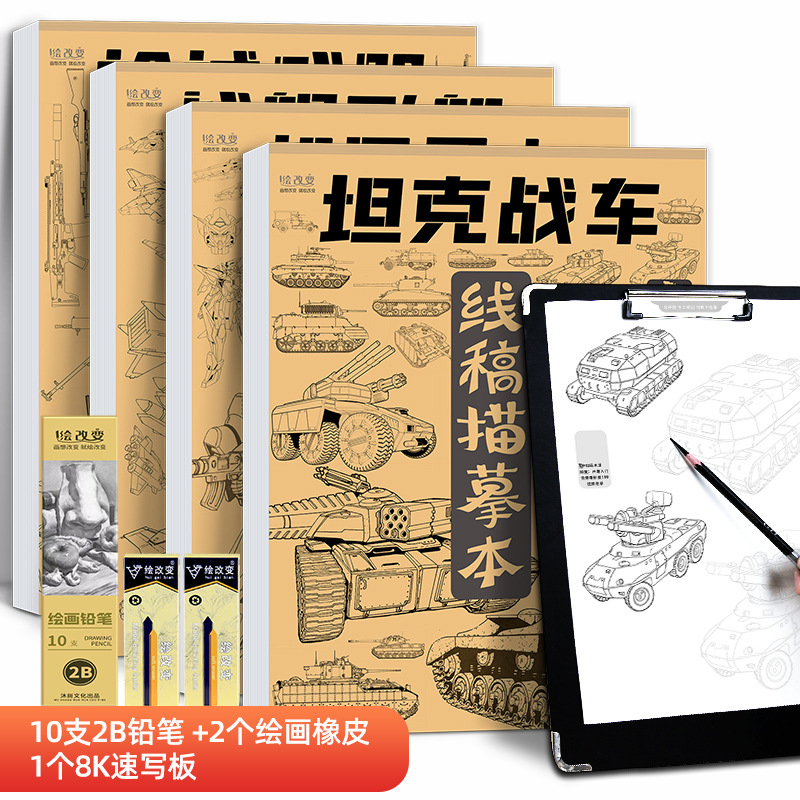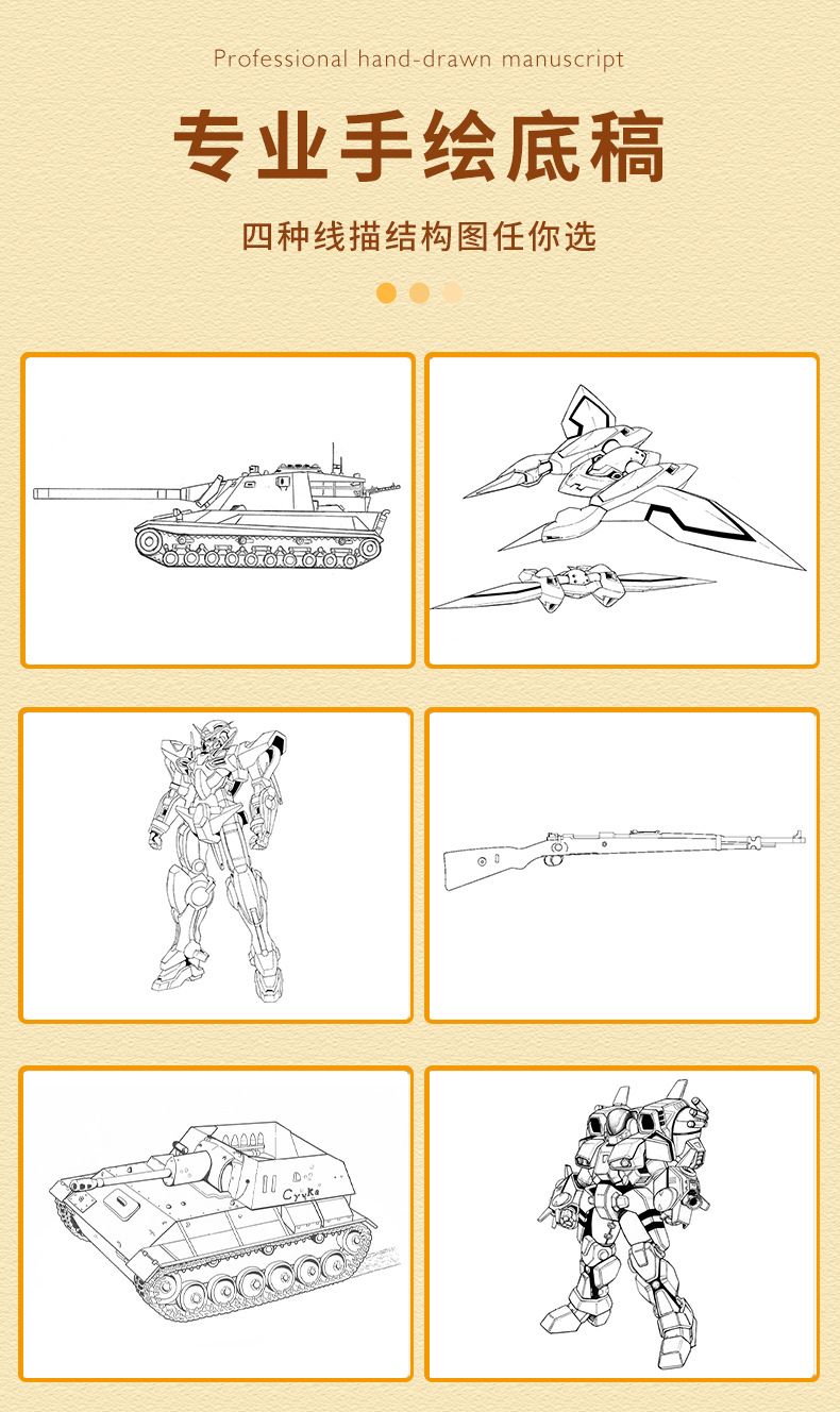 线稿描摹本 机甲勇士枪械武器坦克战车战舰飞船漫画卡通动漫控笔