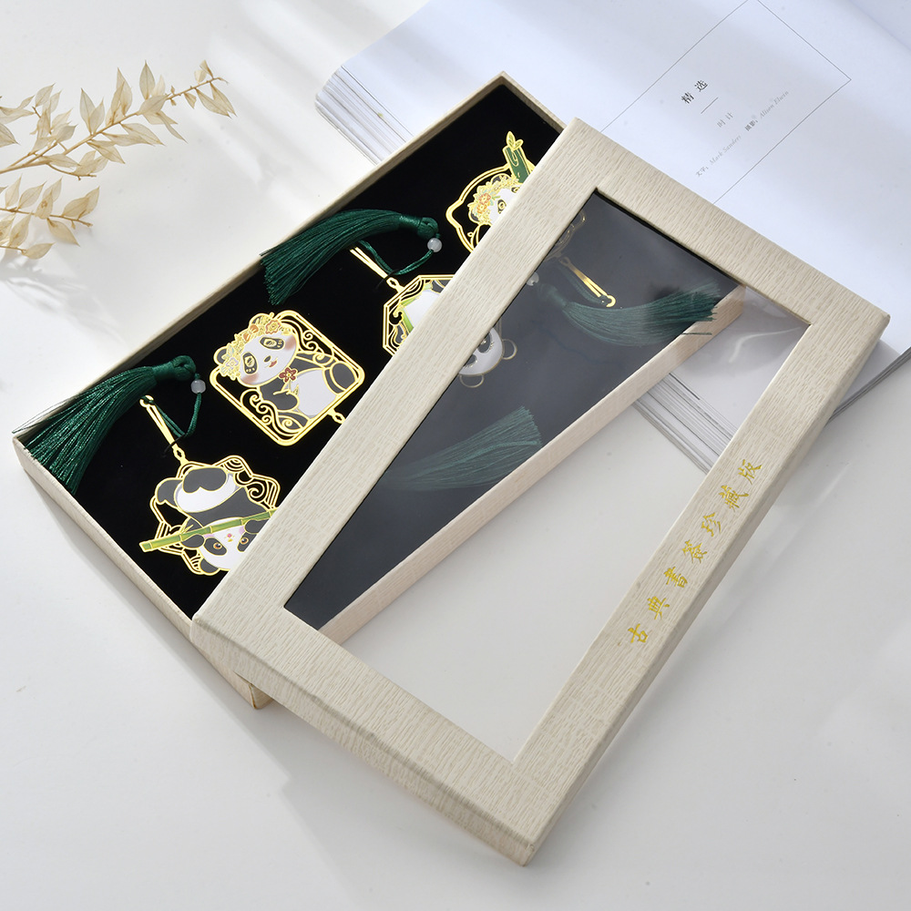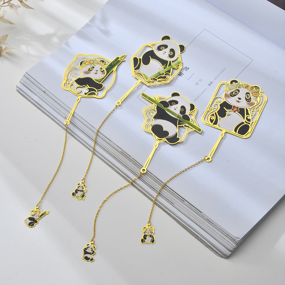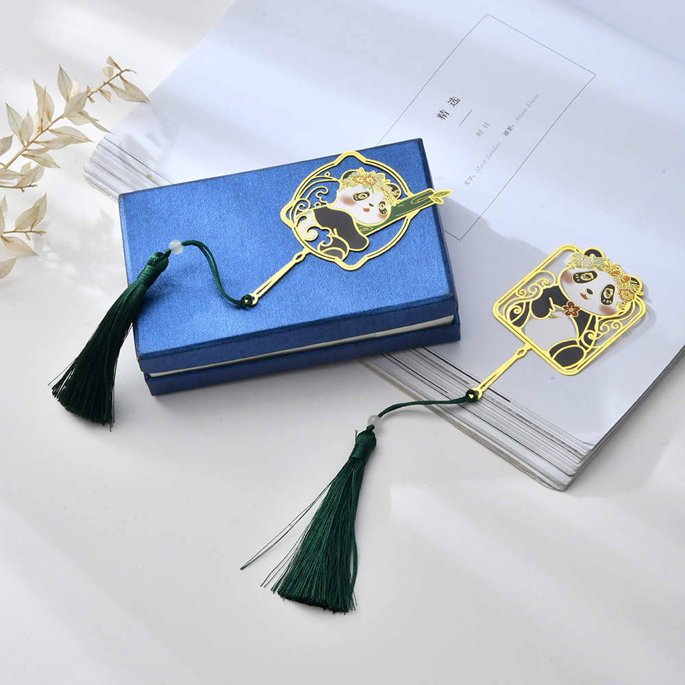 中国风熊猫金属书签古典文创书签流苏镂空书签学生纪念品礼品书签